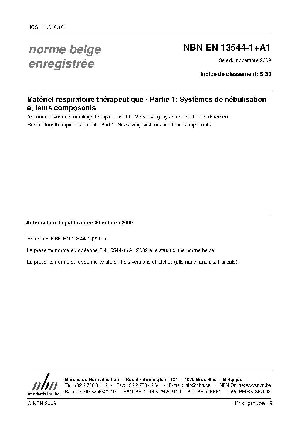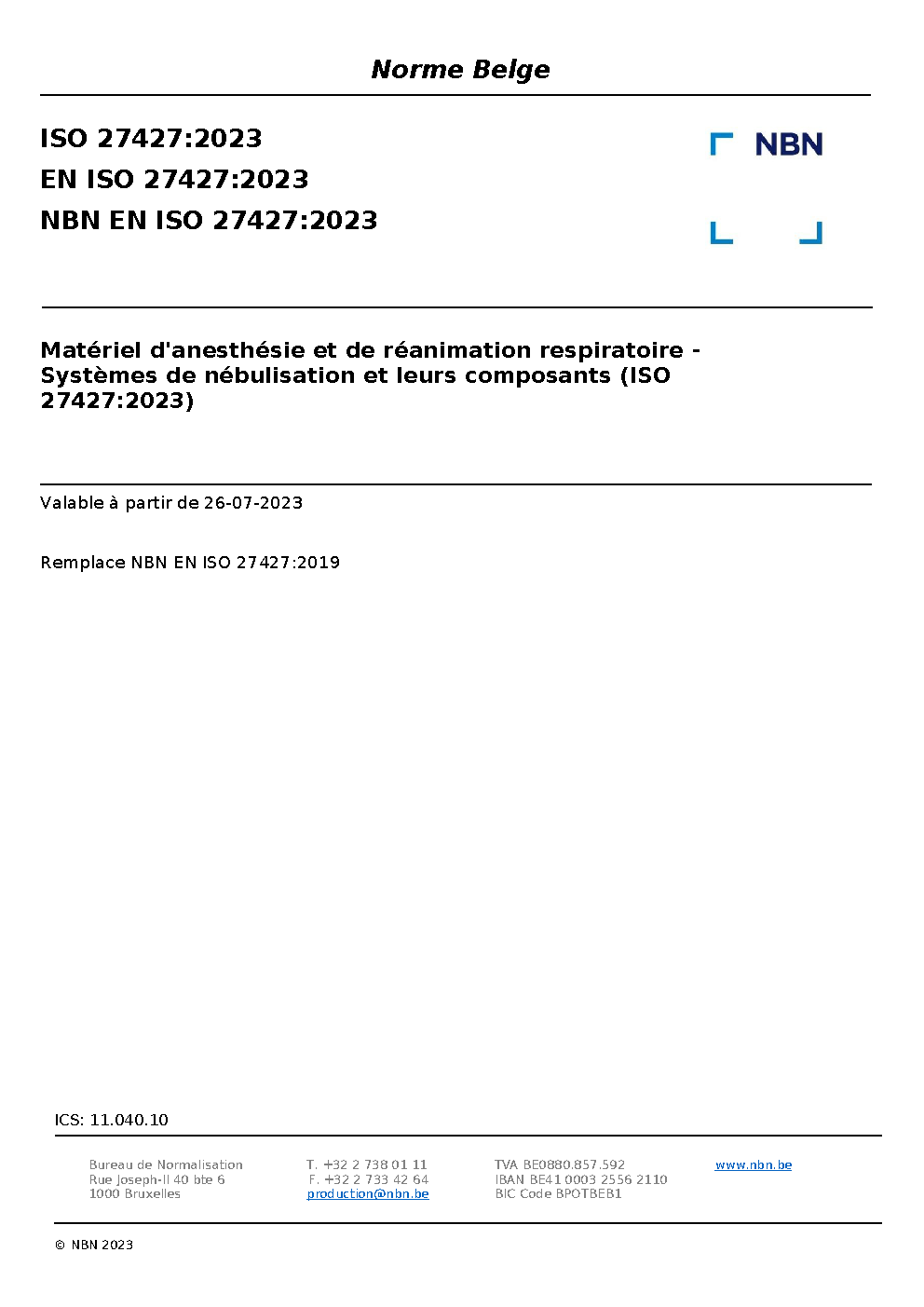 | Publisher | Bureau de Normalisation Belge (NBN) |