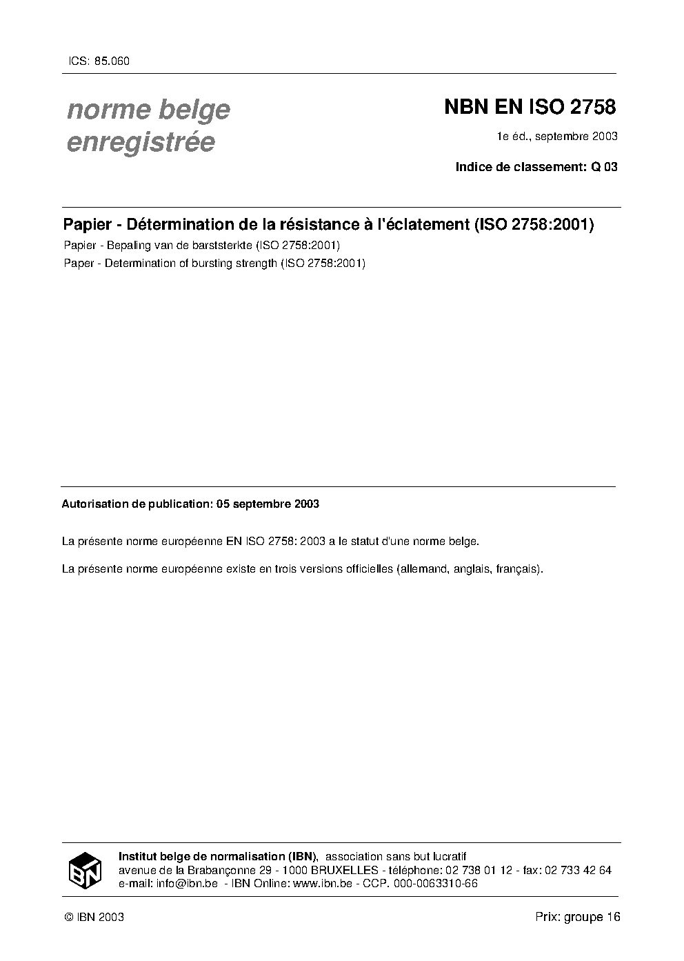 | Publisher | Bureau de Normalisation Belge (NBN) |