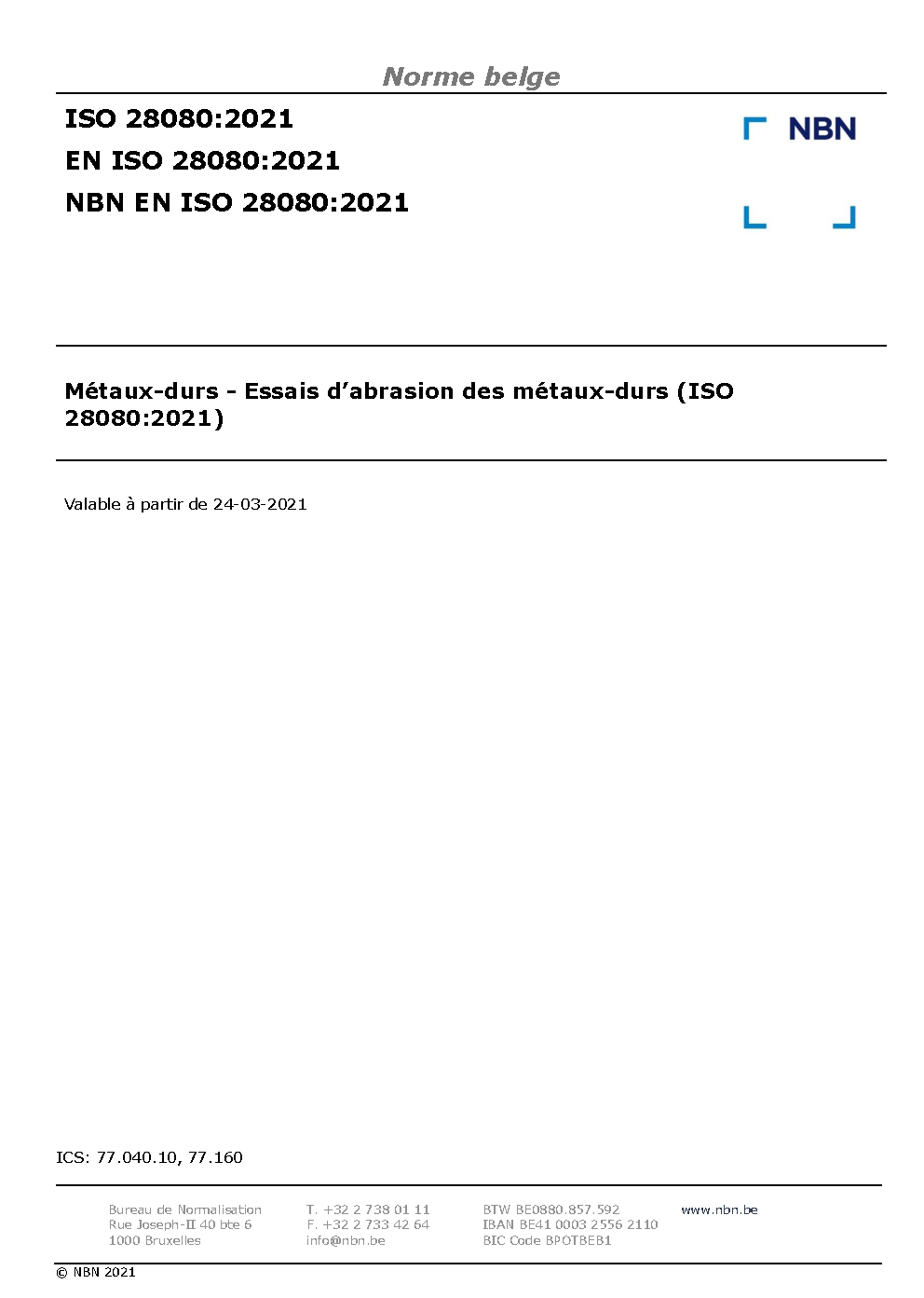 | Publisher | Bureau de Normalisation Belge (NBN) |