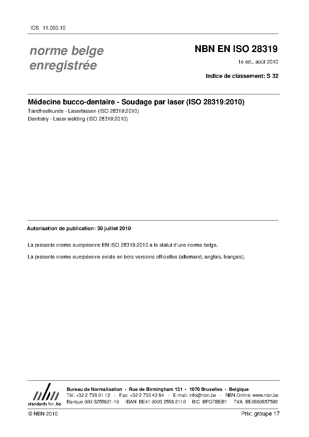 | Publisher | Bureau de Normalisation Belge (NBN) |