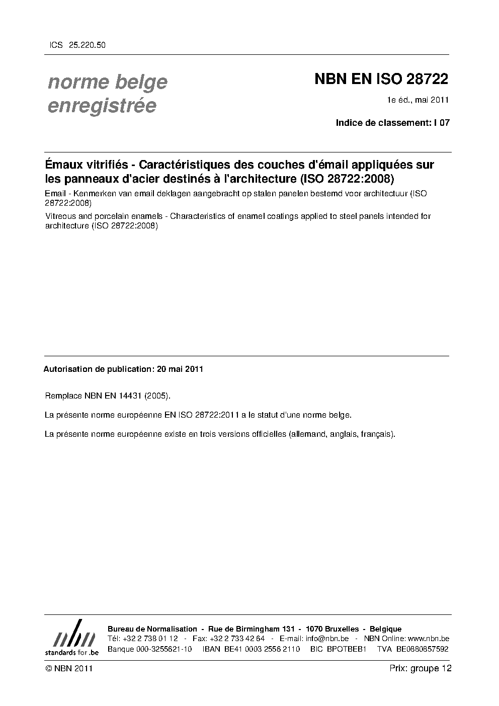| Publisher | Bureau de Normalisation Belge (NBN) |