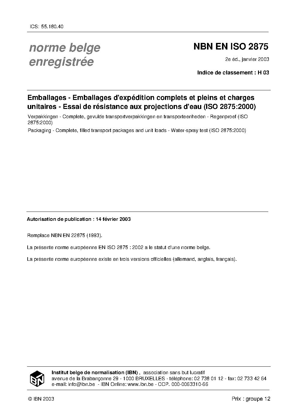 | Publisher | Bureau de Normalisation Belge (NBN) |