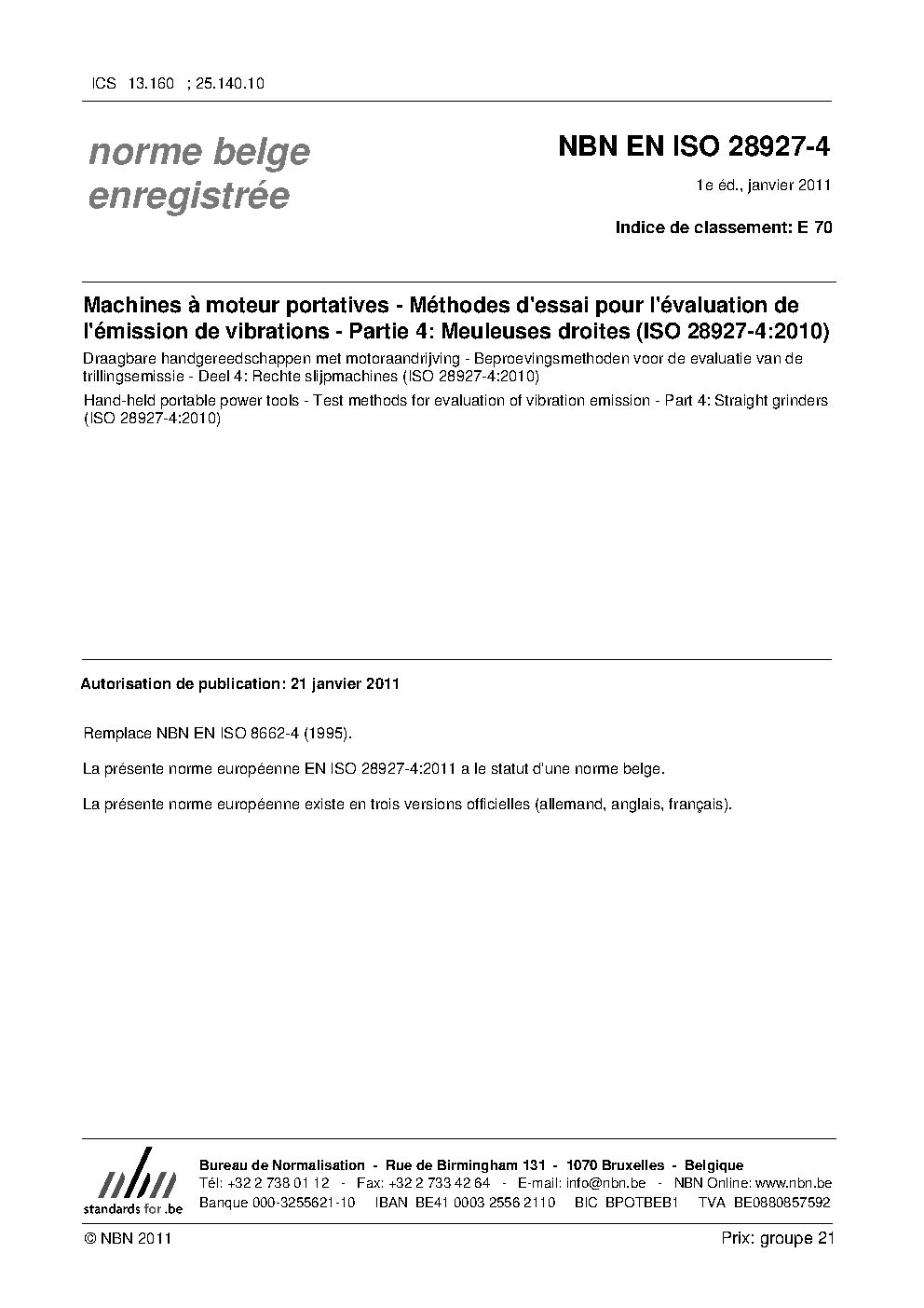 | Publisher | Bureau de Normalisation Belge (NBN) |