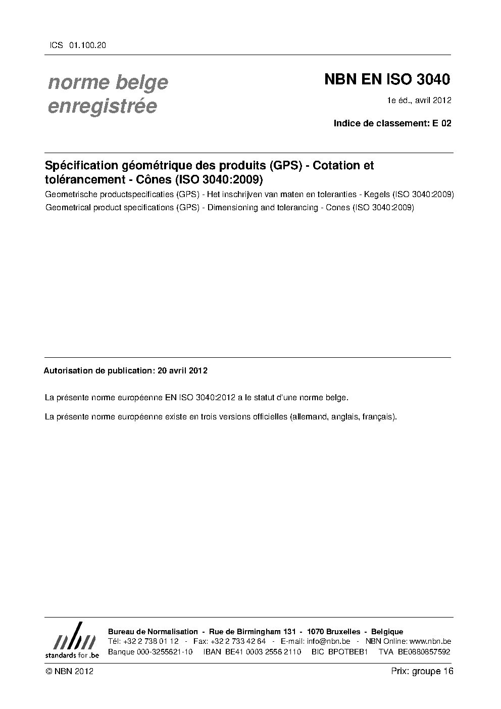 | Publisher | Bureau de Normalisation Belge (NBN) |