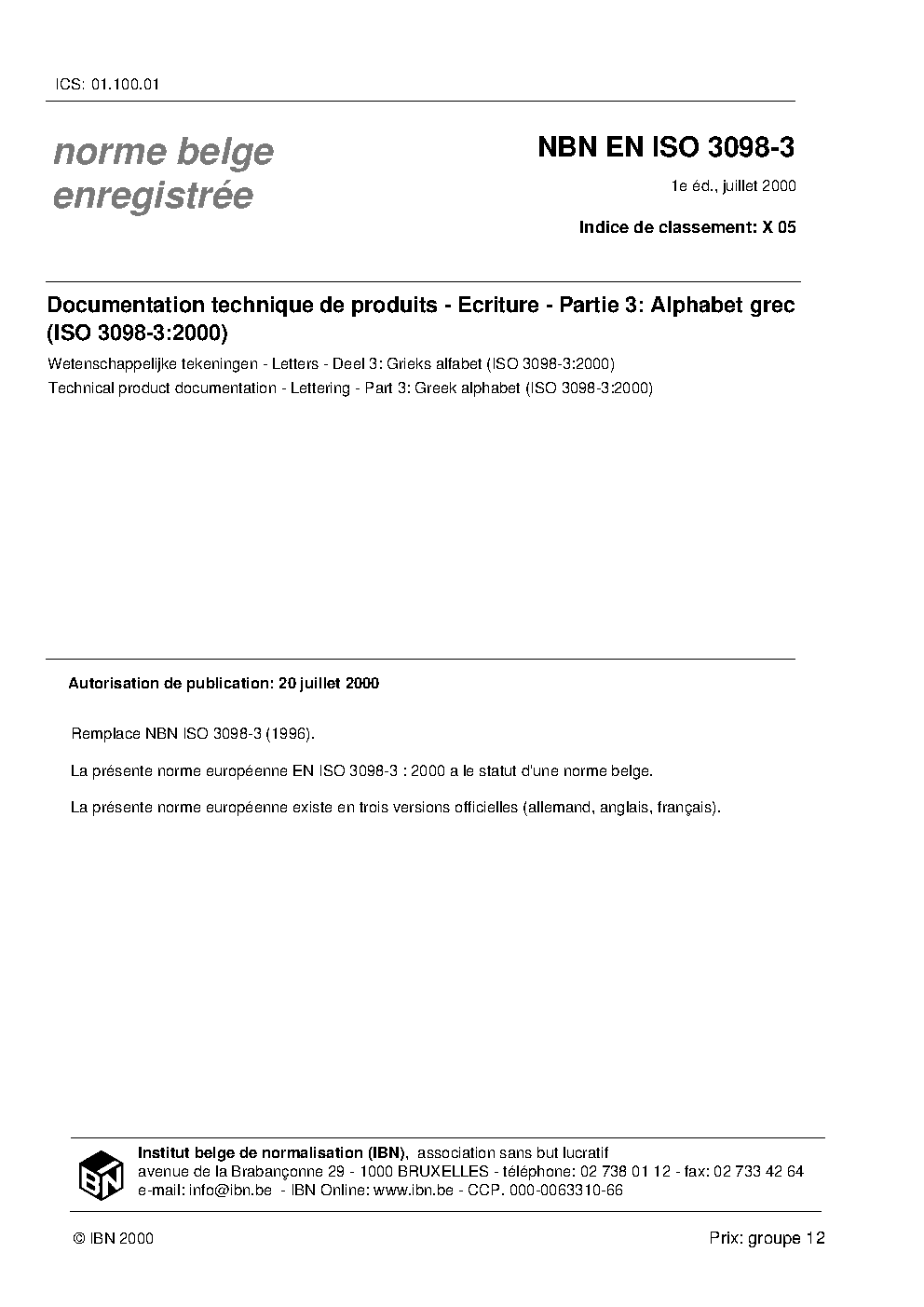 | Publisher | Bureau de Normalisation Belge (NBN) |