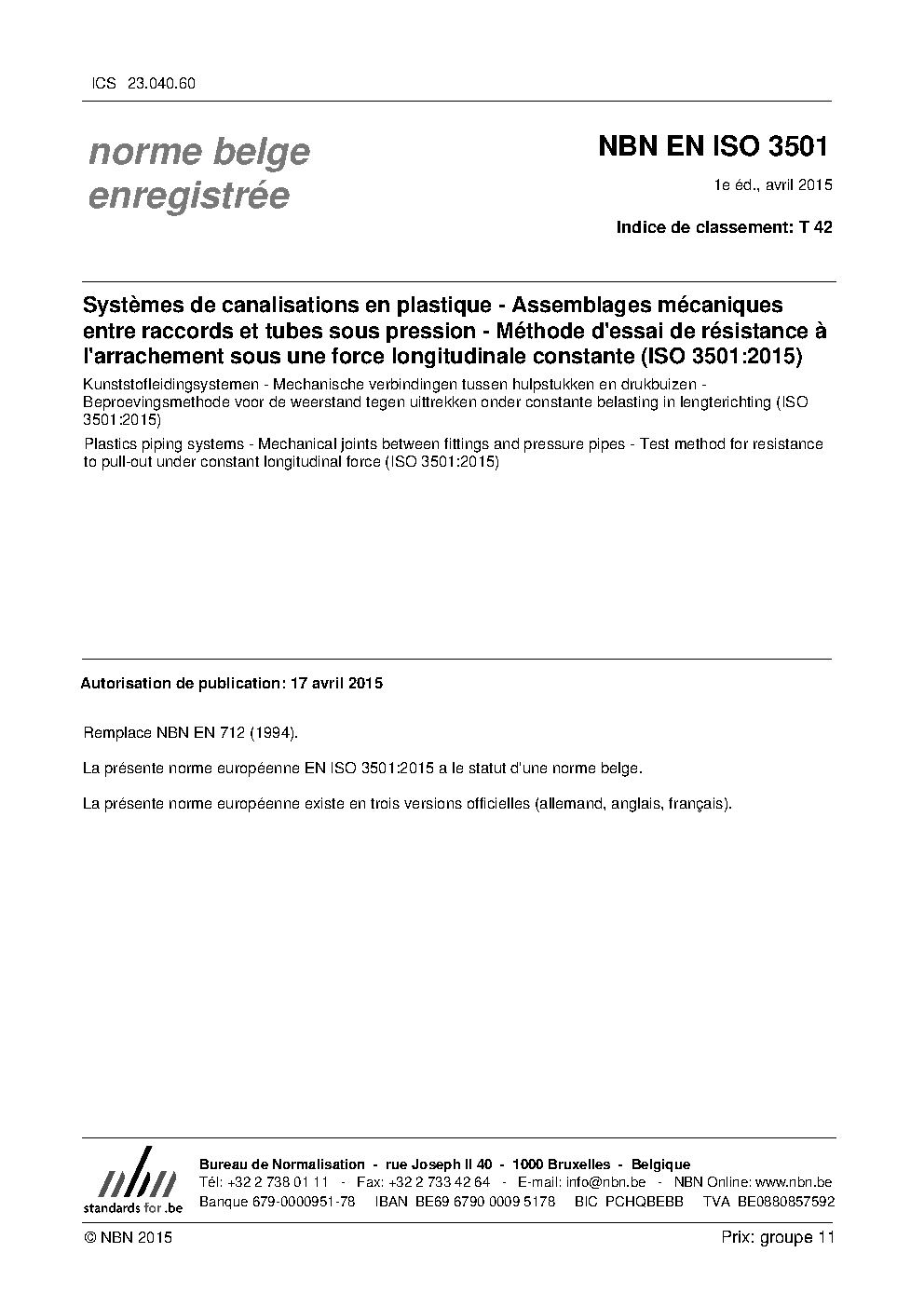 | Publisher | Bureau de Normalisation Belge (NBN) |