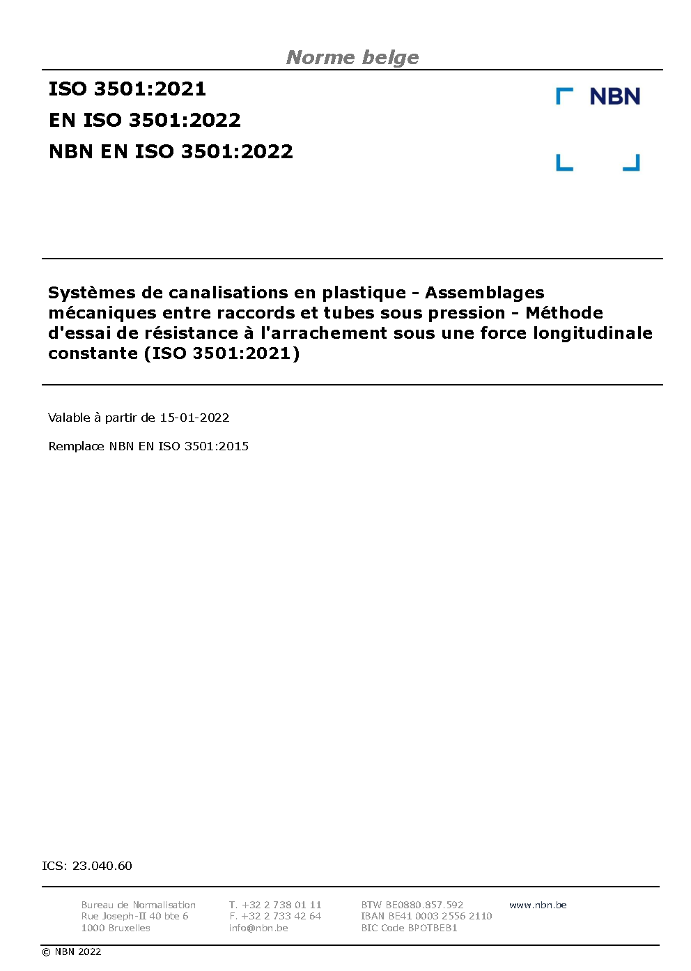 NBN EN ISO 3501:2022