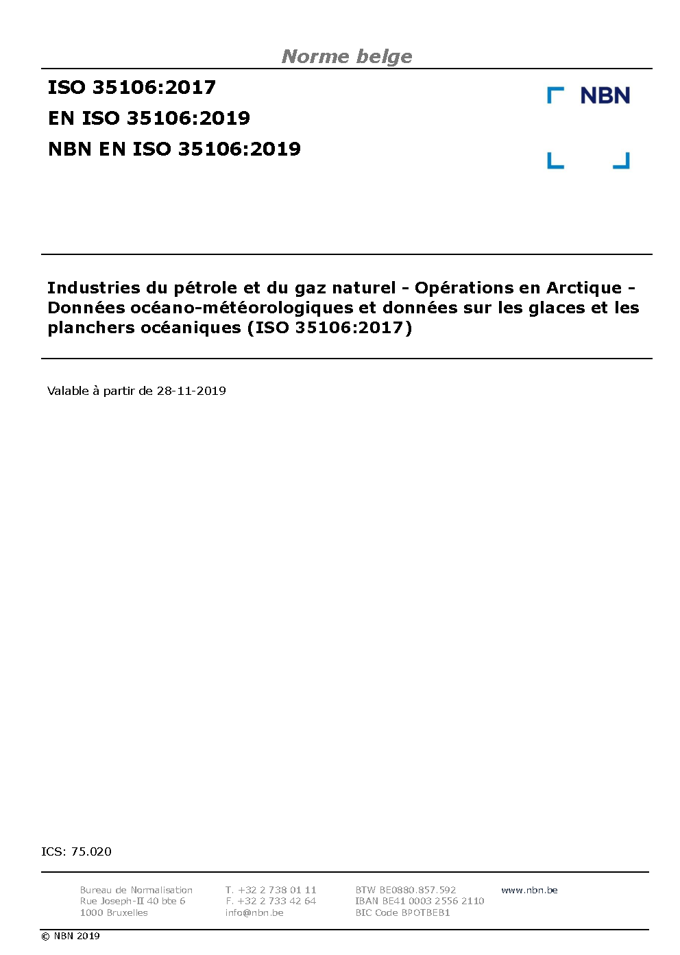 | Publisher | Bureau de Normalisation Belge (NBN) |