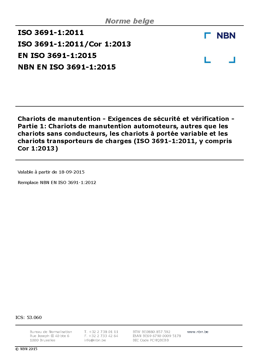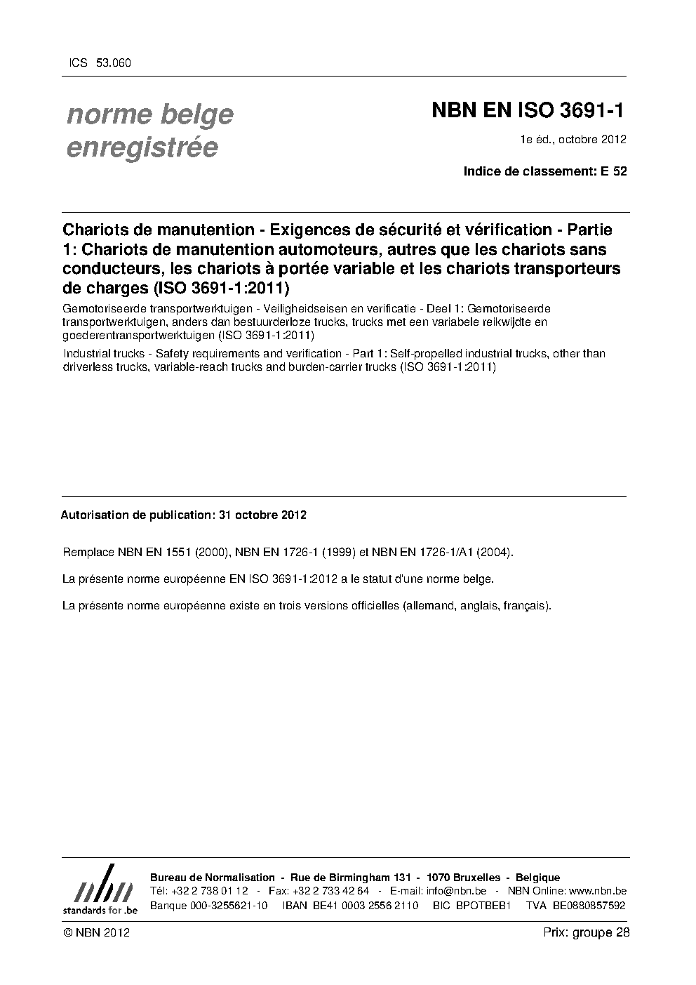 | Publisher | Bureau de Normalisation Belge (NBN) |