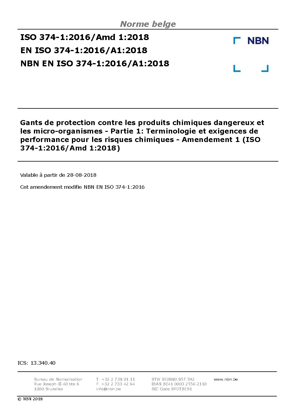 Protective gloves against dangerous chemicals and micro-organisms - Part 1: Terminology and performance requirements for chemical risks - Amendment 1 (ISO 374-1:2016/Amd 1:2018)