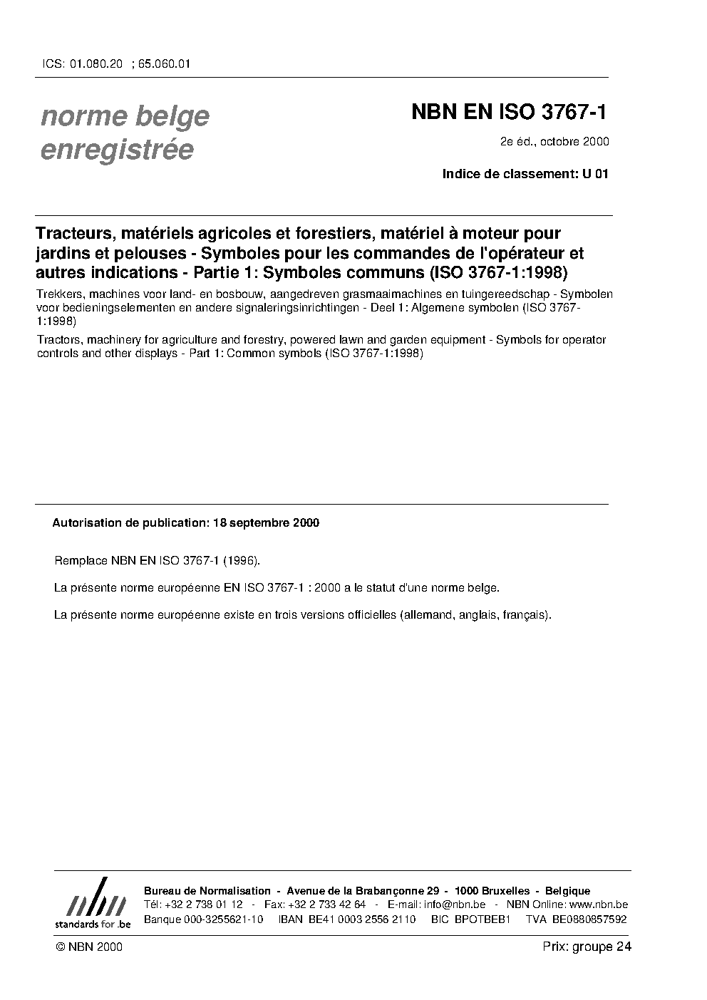 | Publisher | Bureau de Normalisation Belge (NBN) |