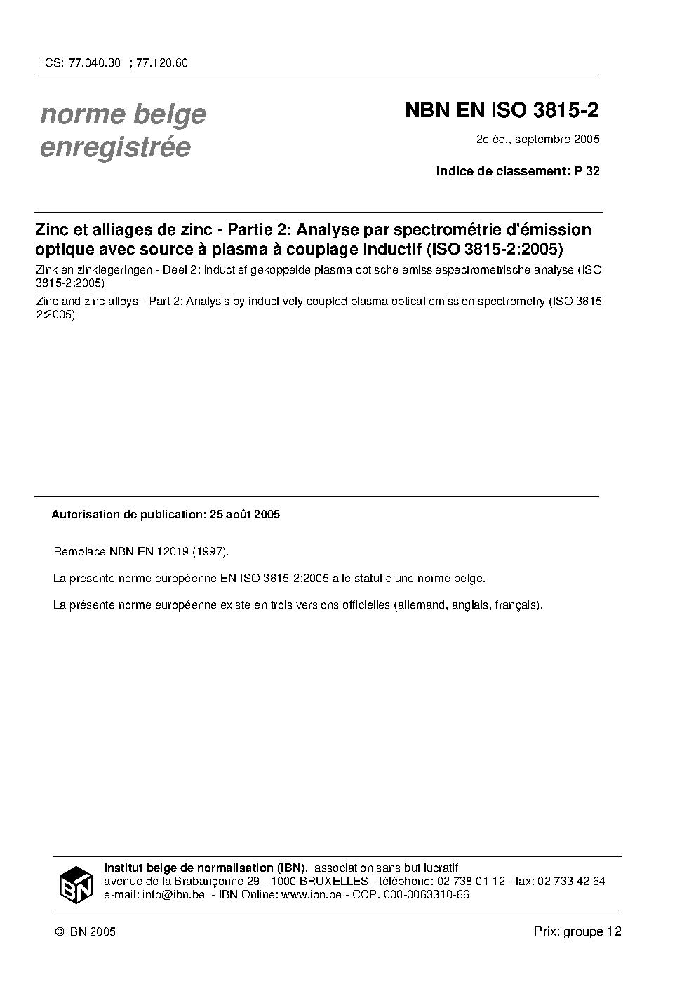 Zinc and zinc alloys - Part 2: Analysis by inductively coupled plasma optical emission spectrometry (ISO 3815-2:2005)