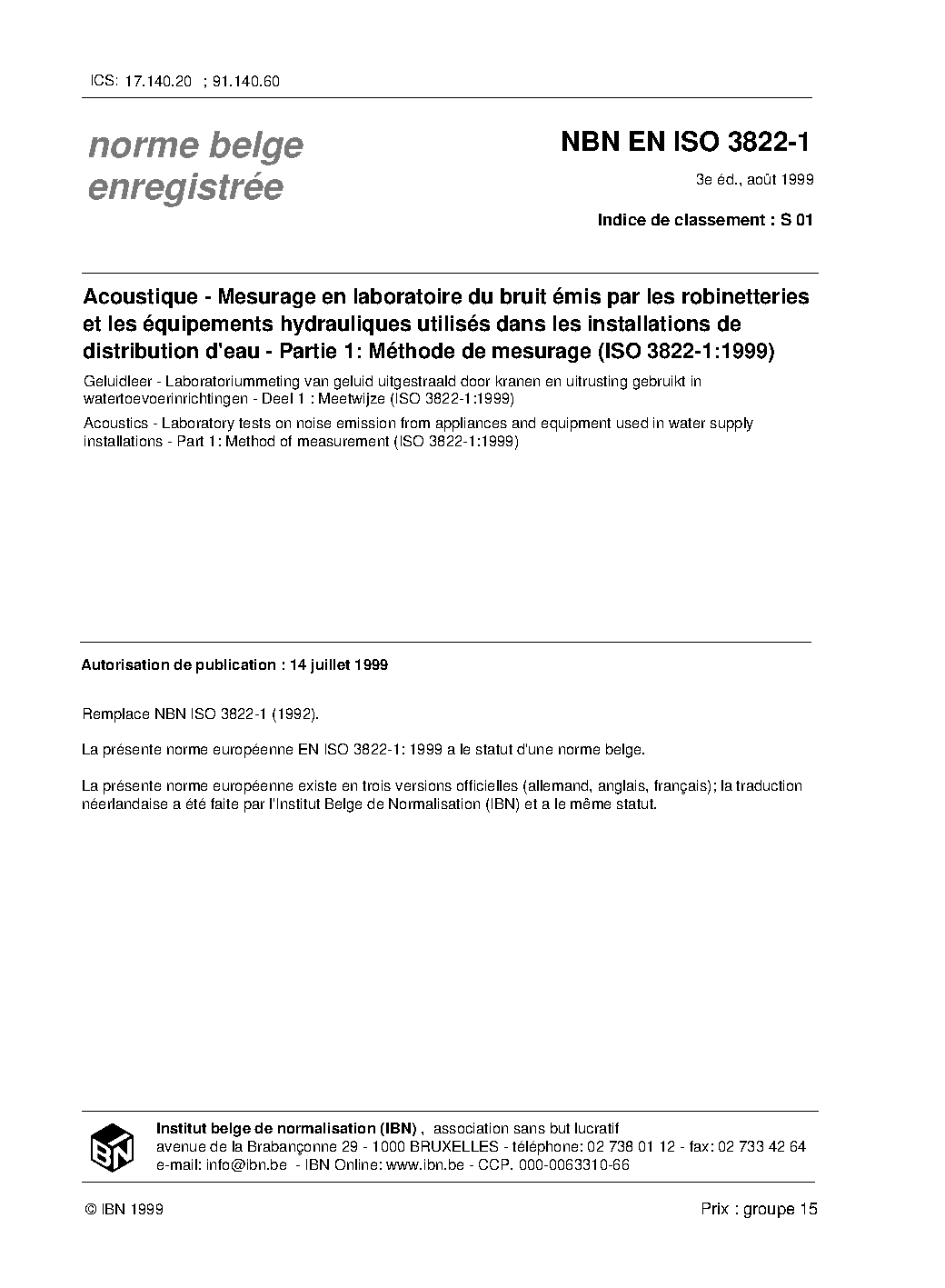 NBN EN ISO 3822-1:1999