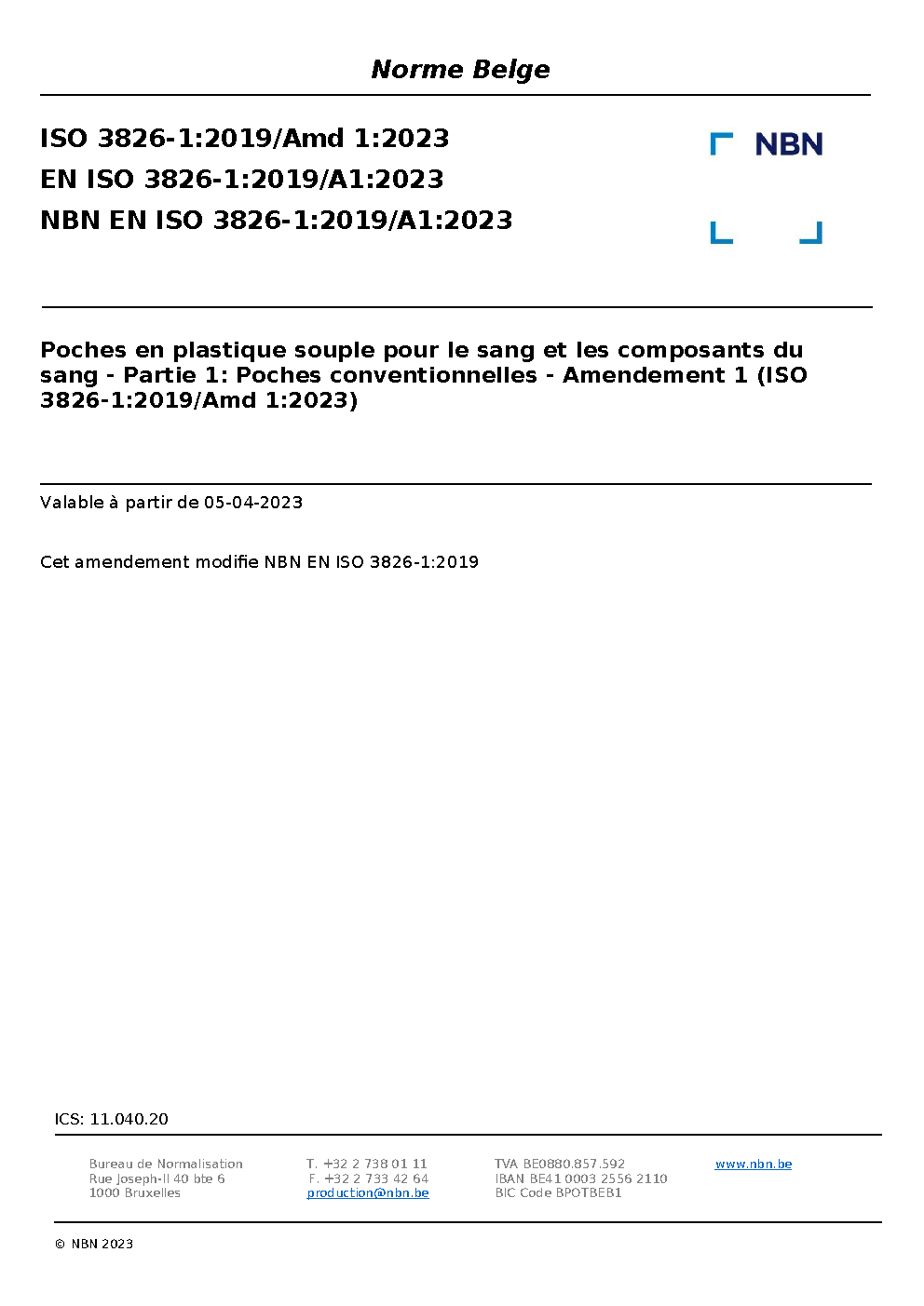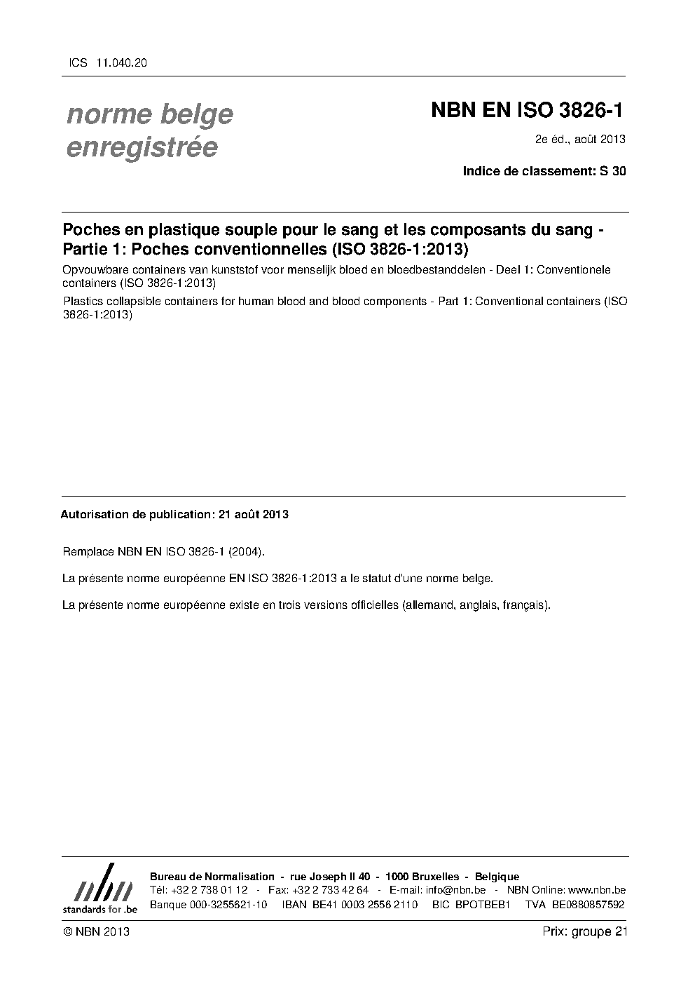 | Publisher | Bureau de Normalisation Belge (NBN) |