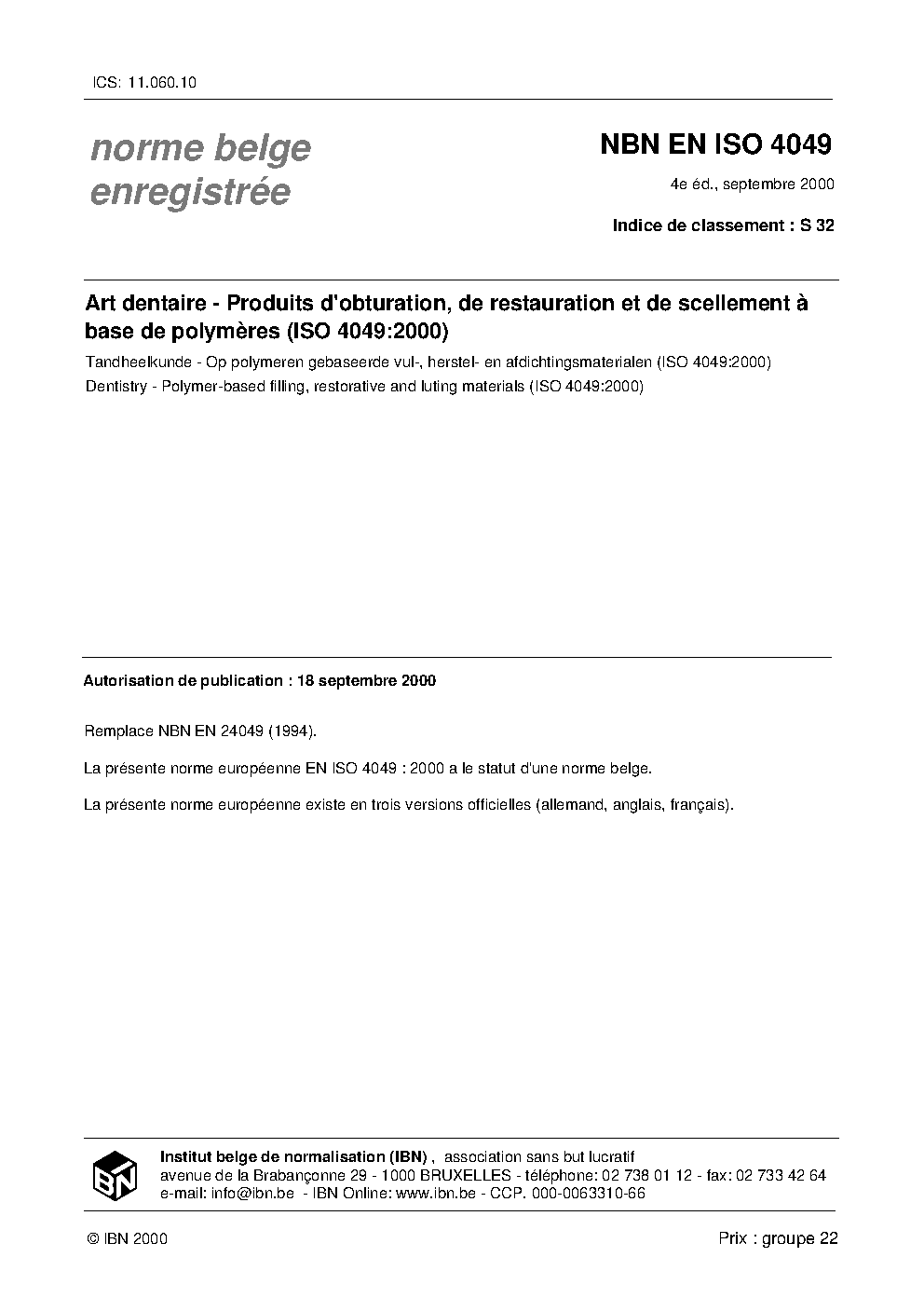 | Publisher | Bureau de Normalisation Belge (NBN) |
