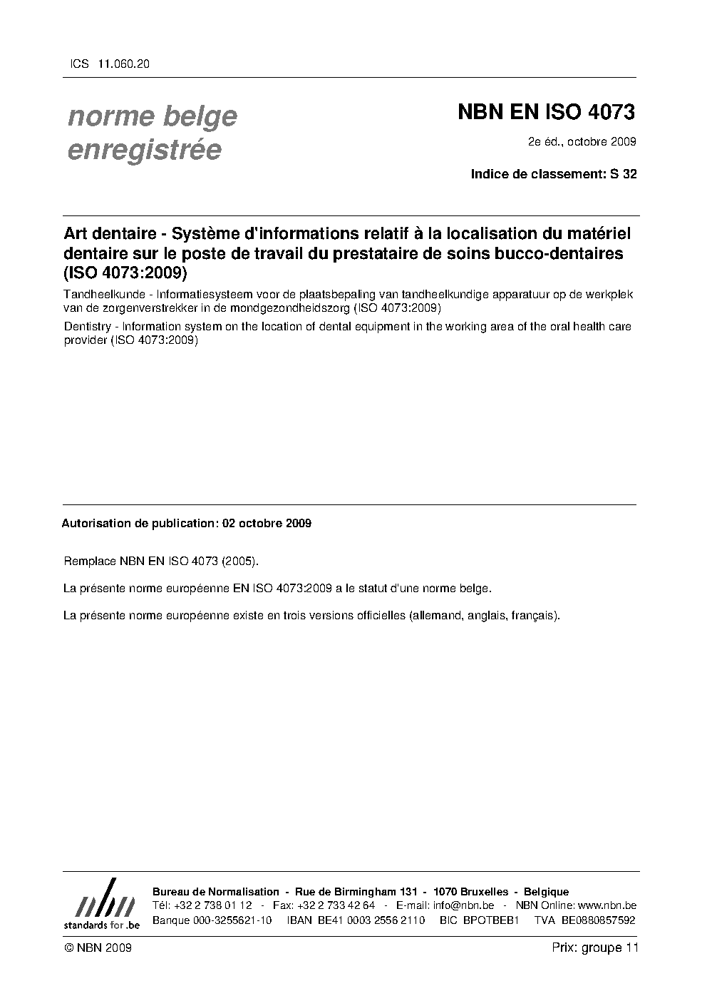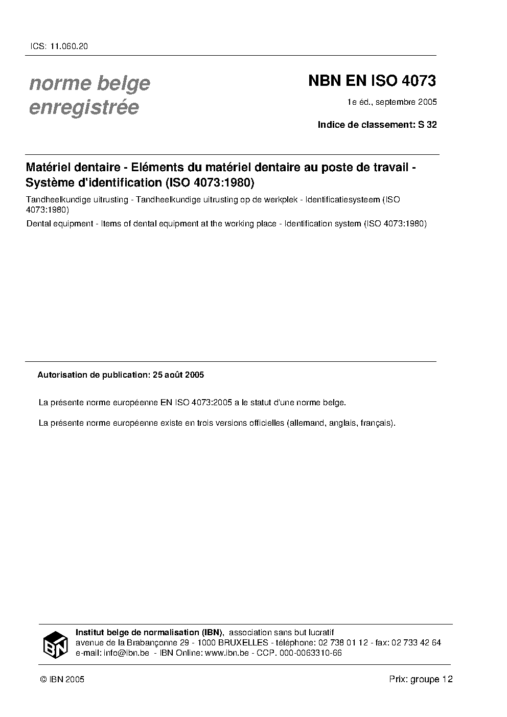 | Publisher | Bureau de Normalisation Belge (NBN) |