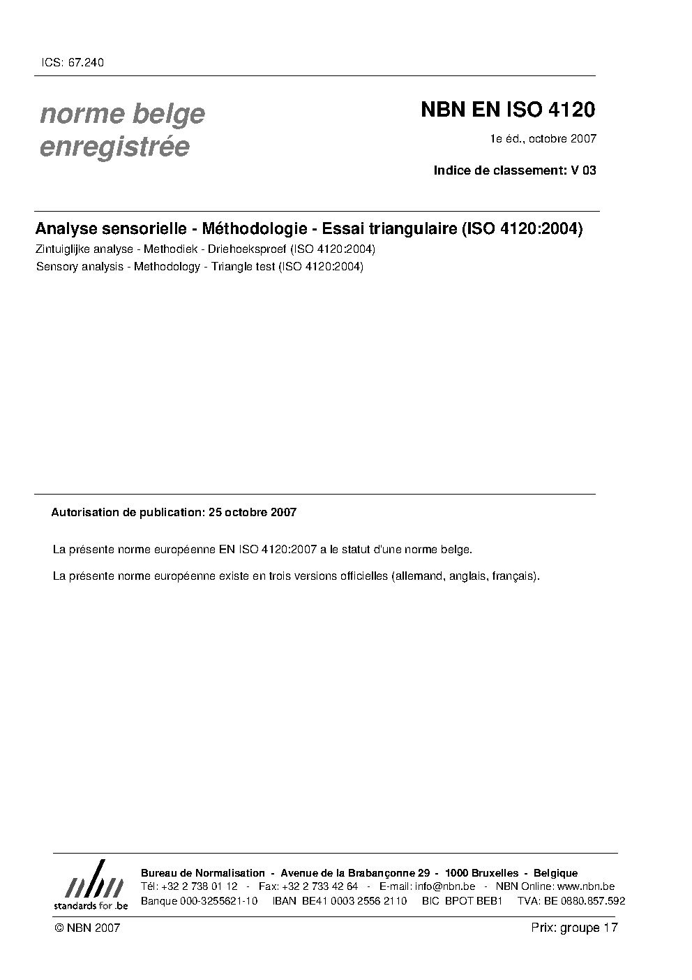 | Publisher | Bureau de Normalisation Belge (NBN) |