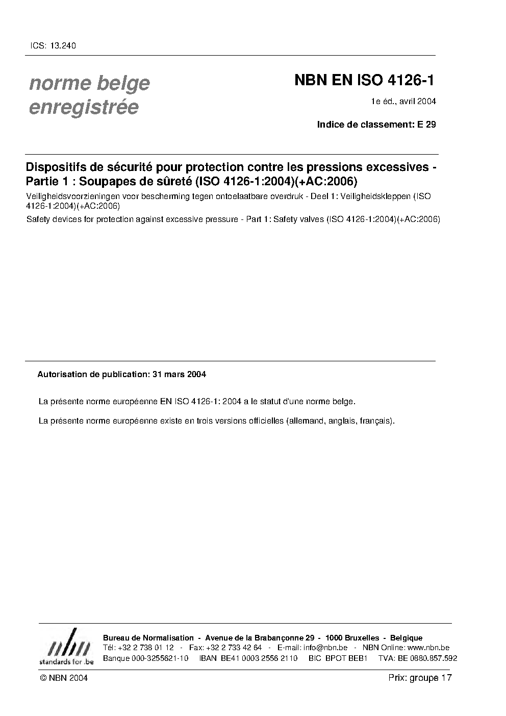 | Publisher | Bureau de Normalisation Belge (NBN) |