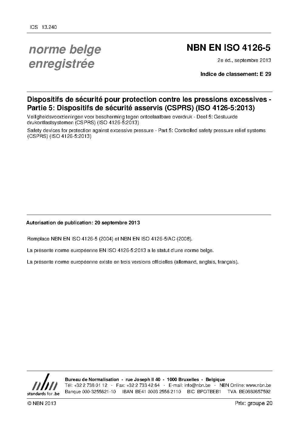 | Publisher | Bureau de Normalisation Belge (NBN) |