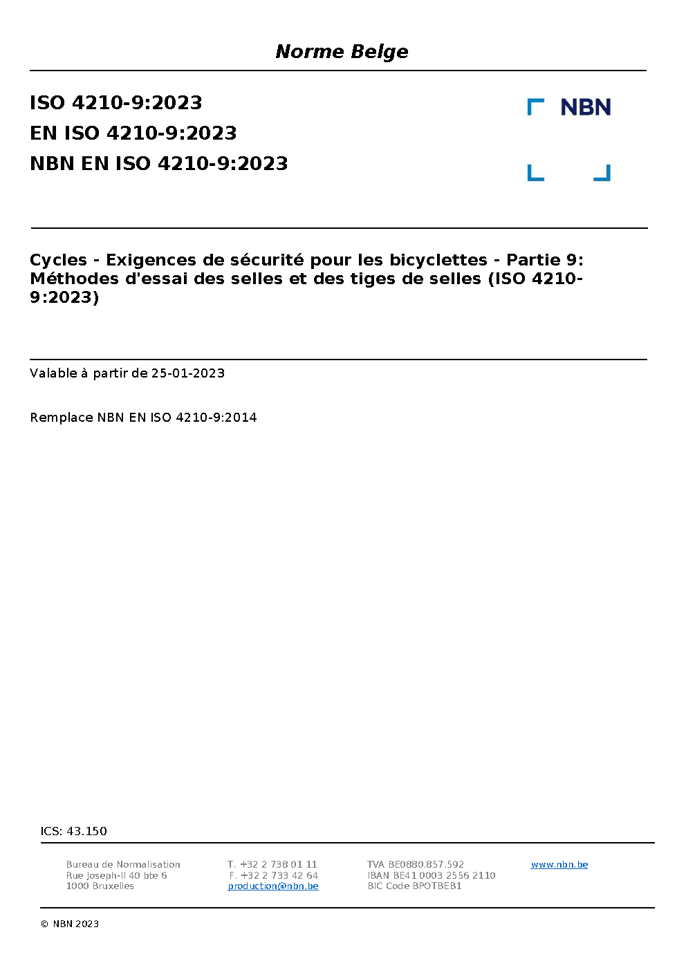 ISO 4210-9:2014 specifies saddle and seat-post test methods for ISO 4210-2.