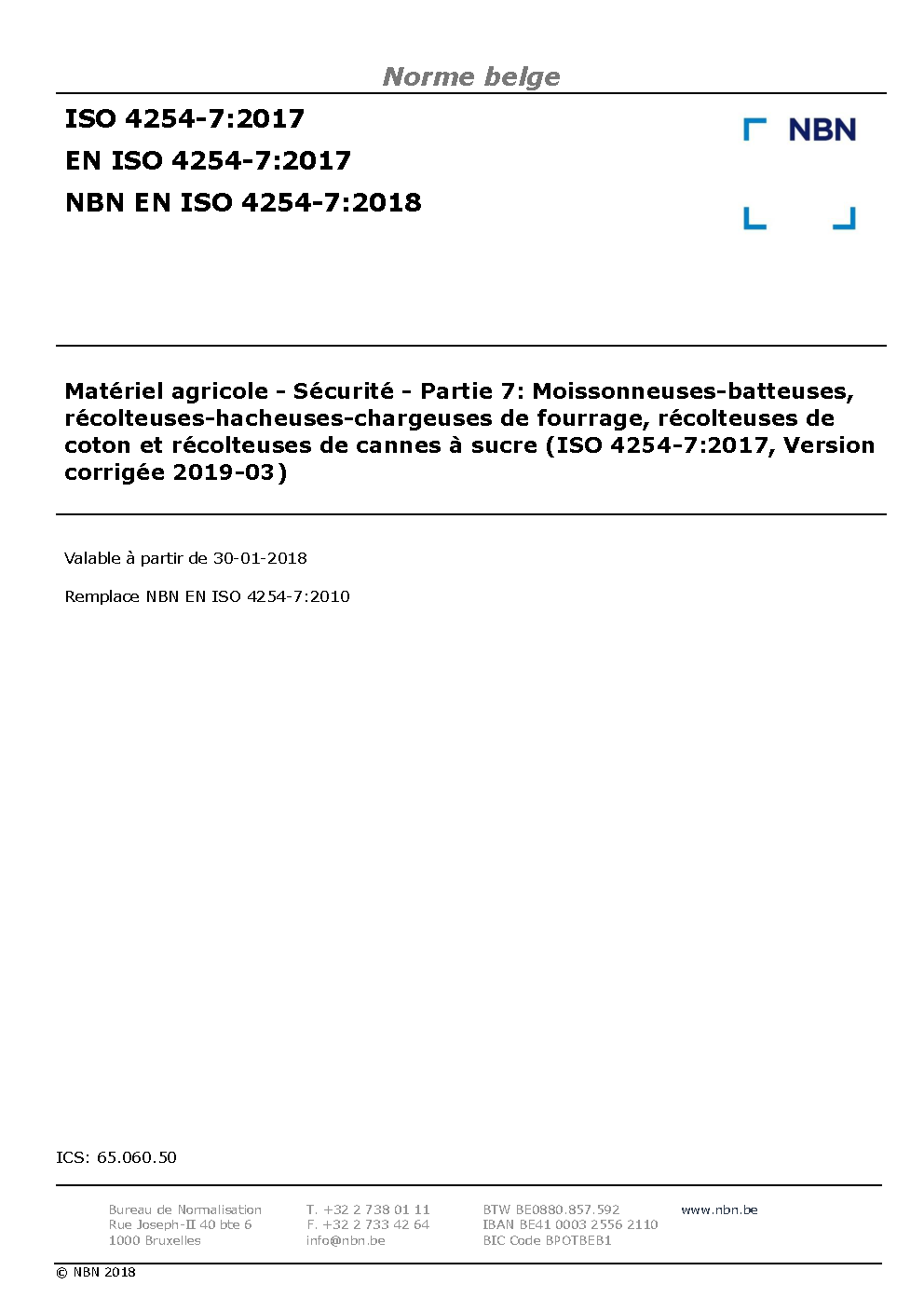 NBN EN ISO 4254-7:2018