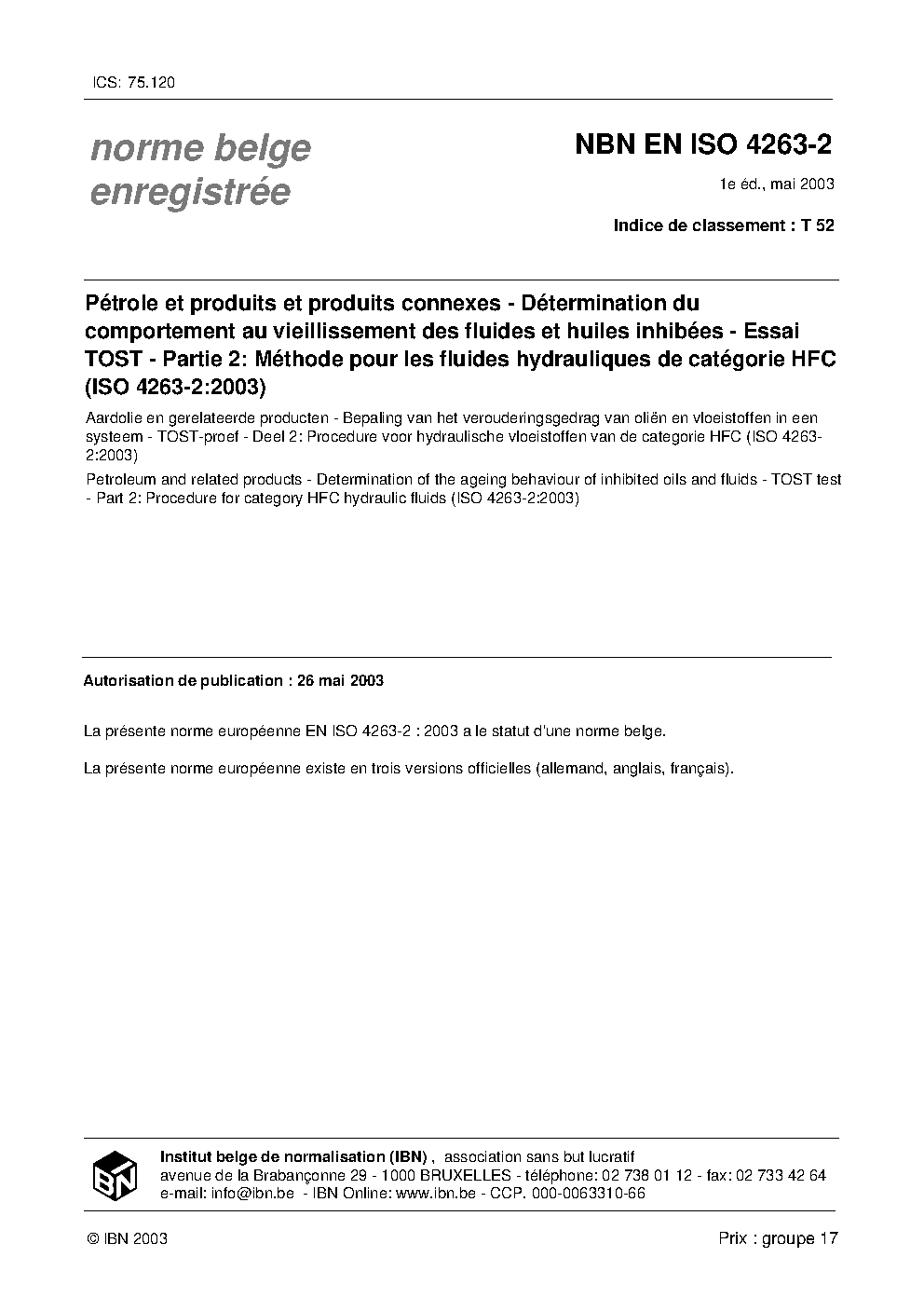| Publisher | Bureau de Normalisation Belge (NBN) |