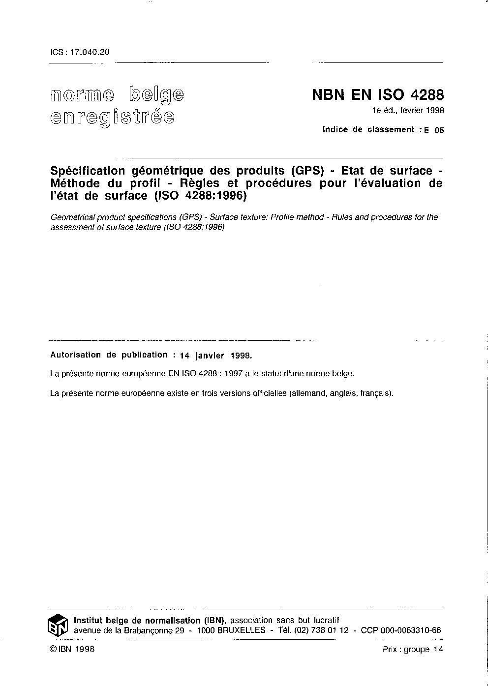 NBN EN ISO 4288:1998