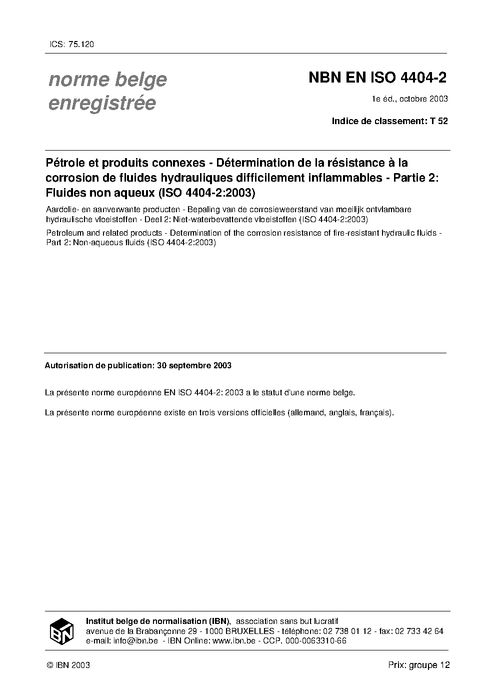| Publisher | Bureau de Normalisation Belge (NBN) |