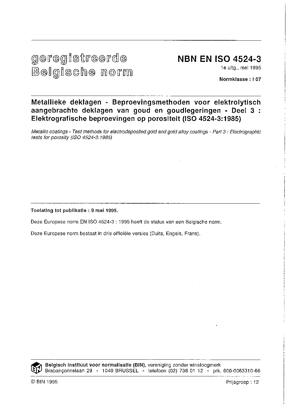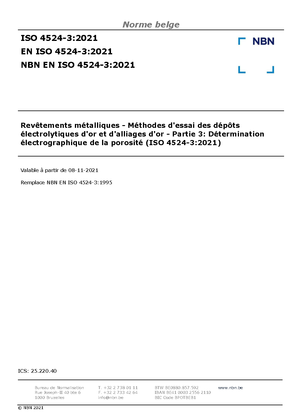 | Publisher | Bureau de Normalisation Belge (NBN) |