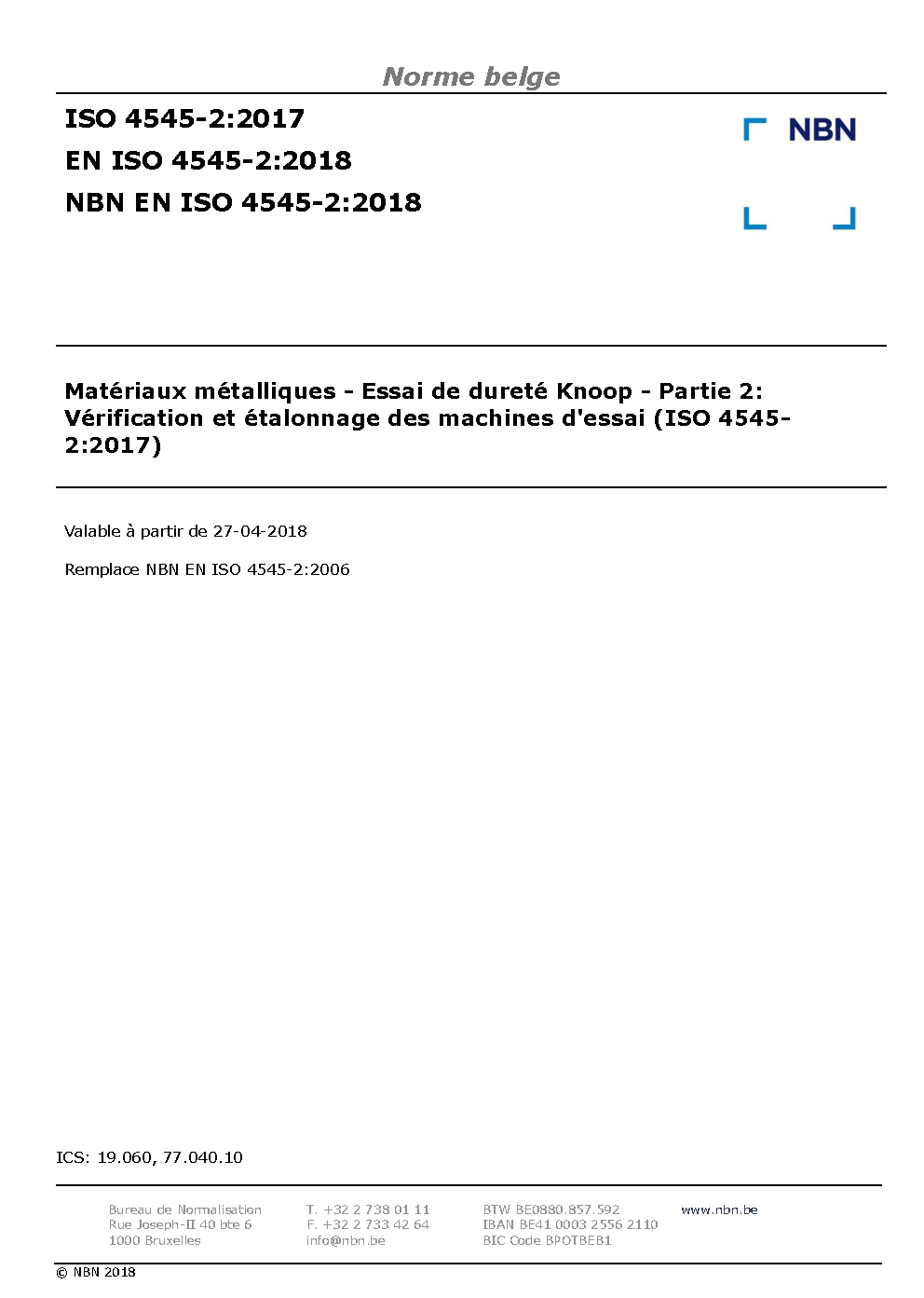 NBN EN ISO 4545-2:2018
