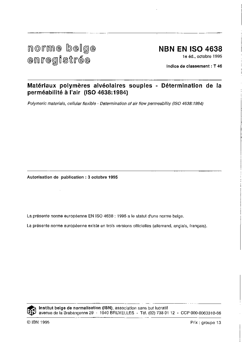 | Publisher | Bureau de Normalisation Belge (NBN) |