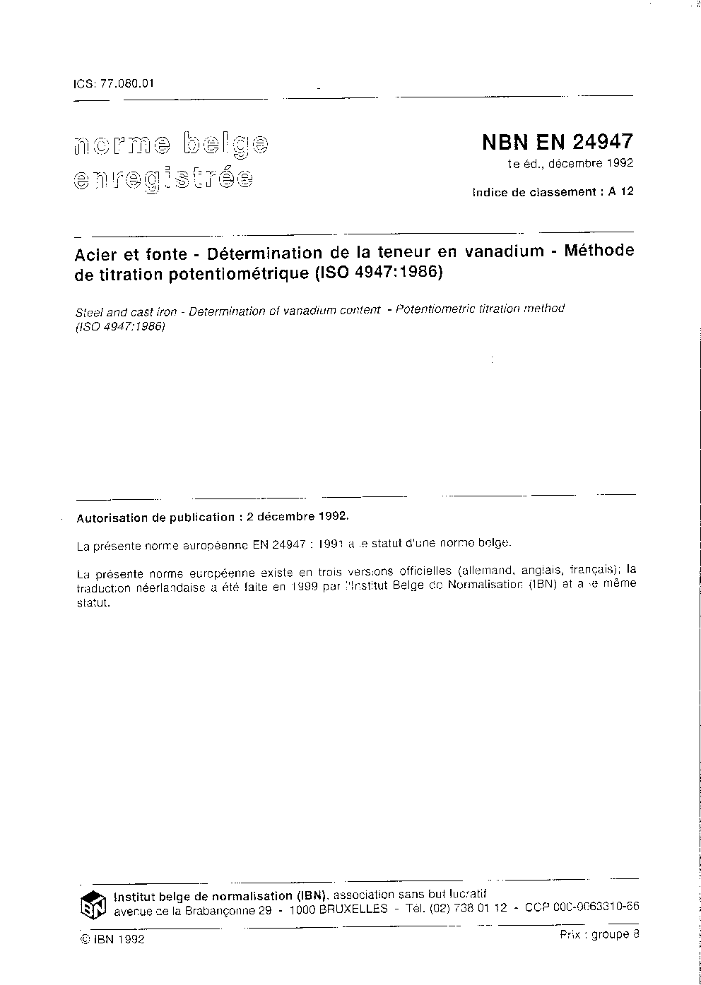 | Publisher | Bureau de Normalisation Belge (NBN) |