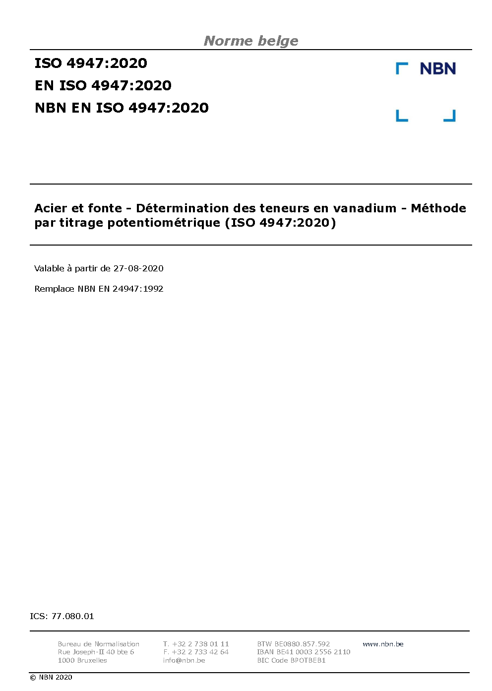 NBN EN ISO 4947:2020