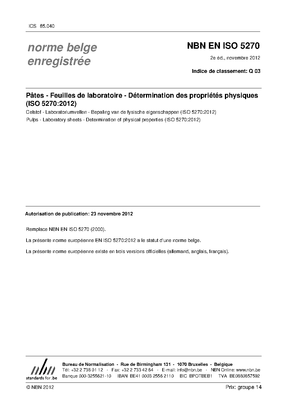 | Publisher | Bureau de Normalisation Belge (NBN) |
