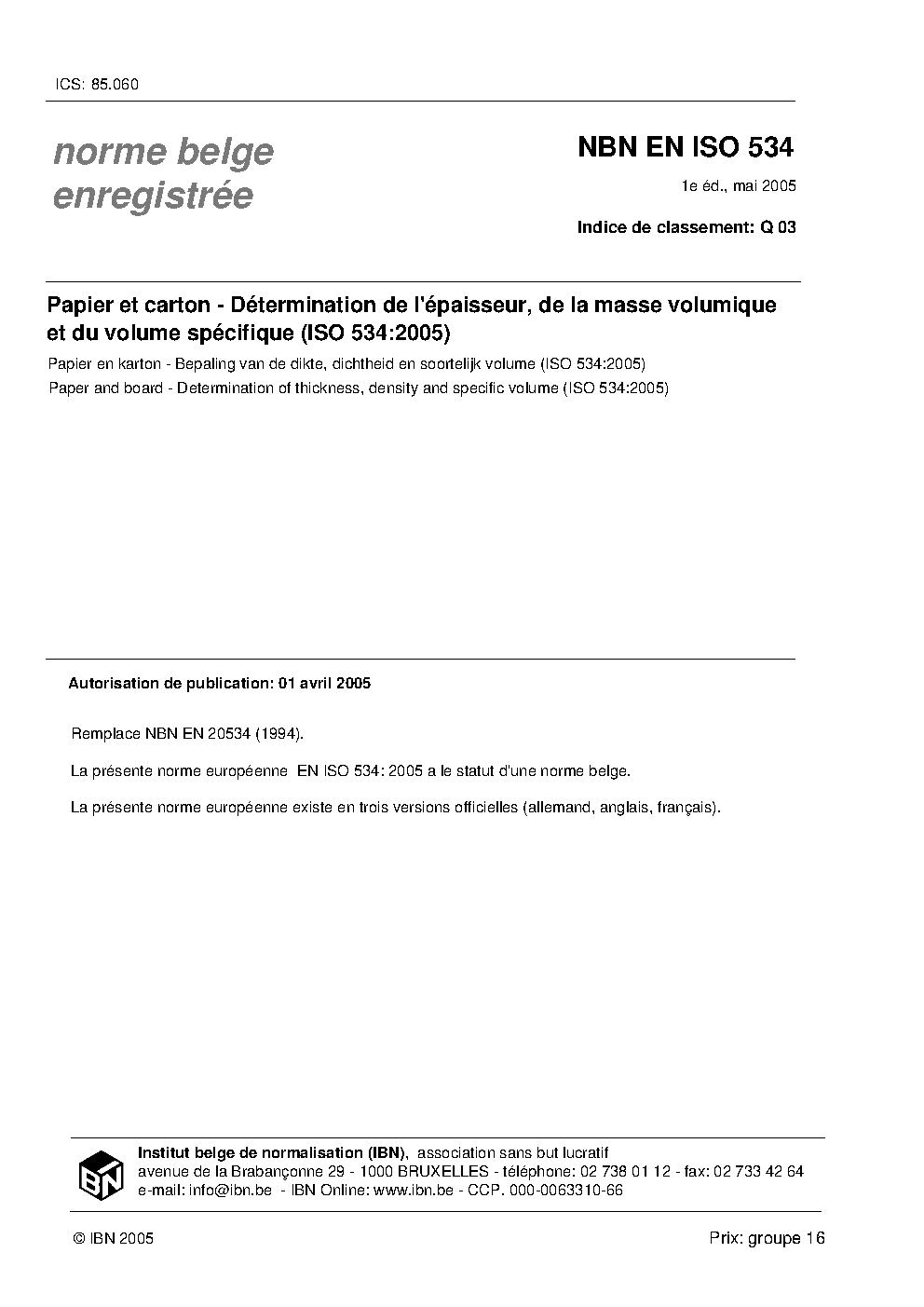 NBN EN ISO 534:2012