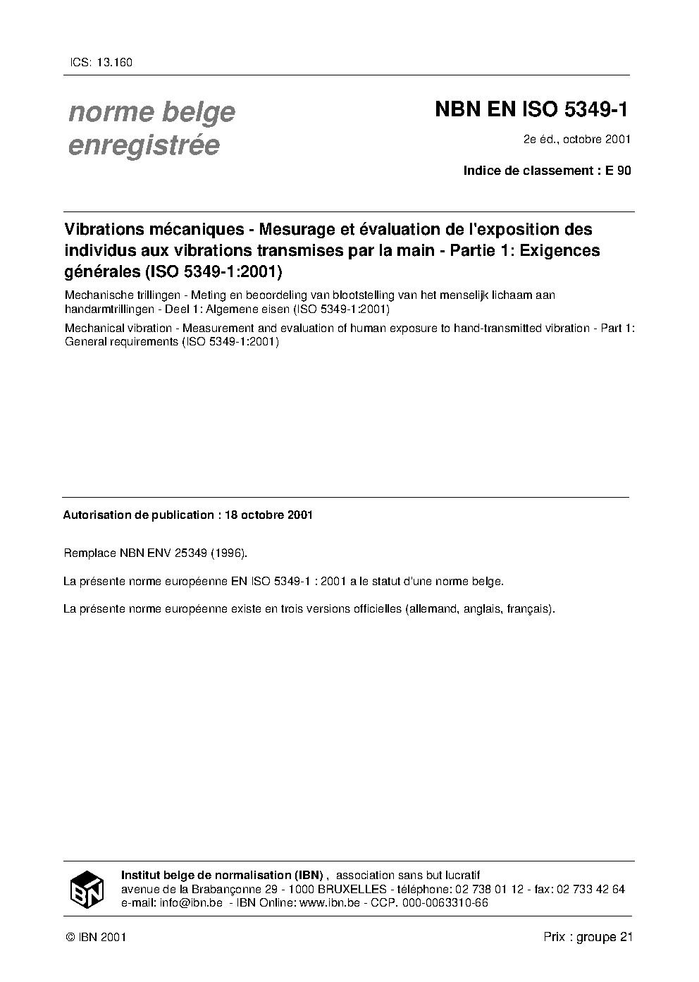 NBN EN ISO 5349-1:2001