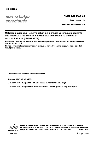 NBN EN ISO 61:1999
