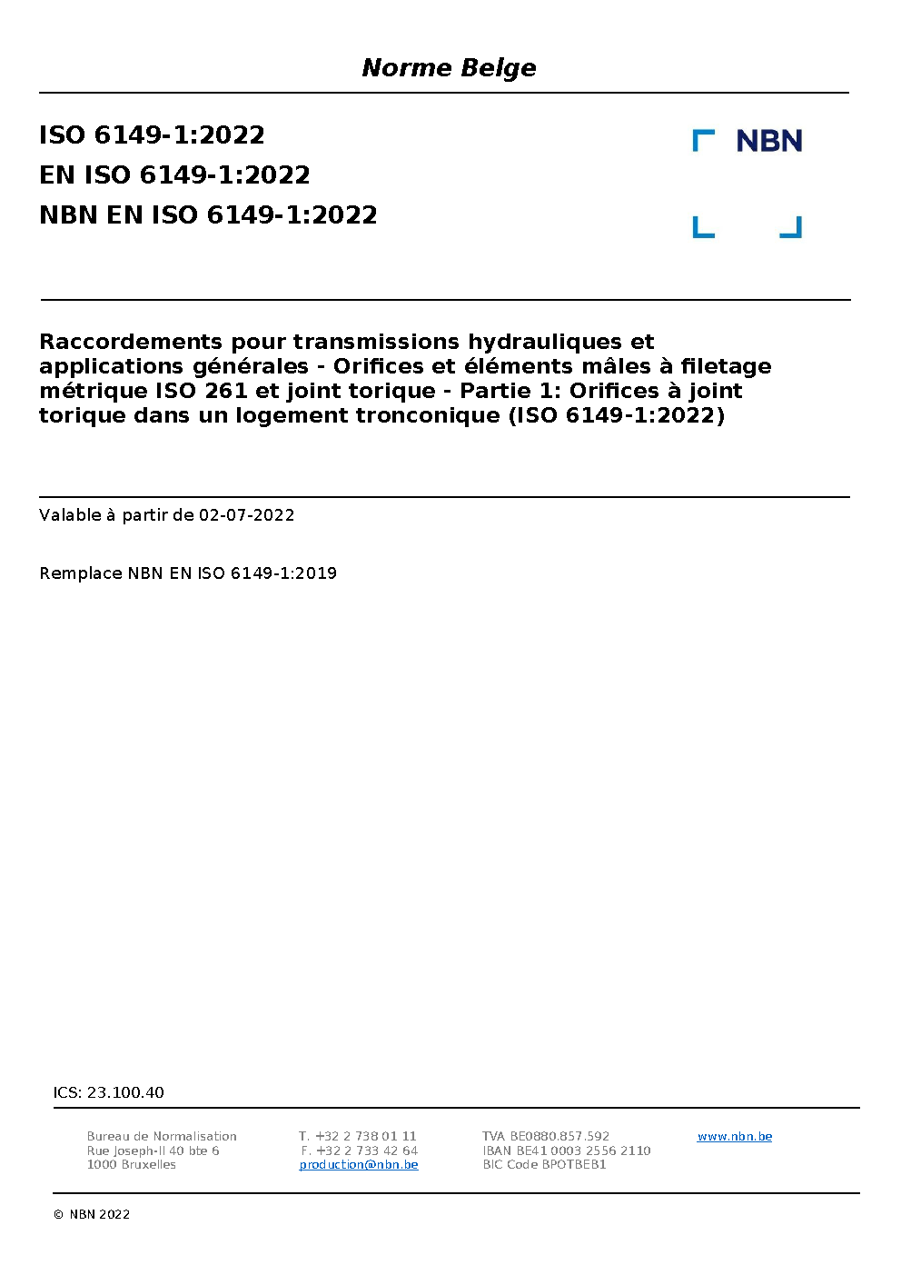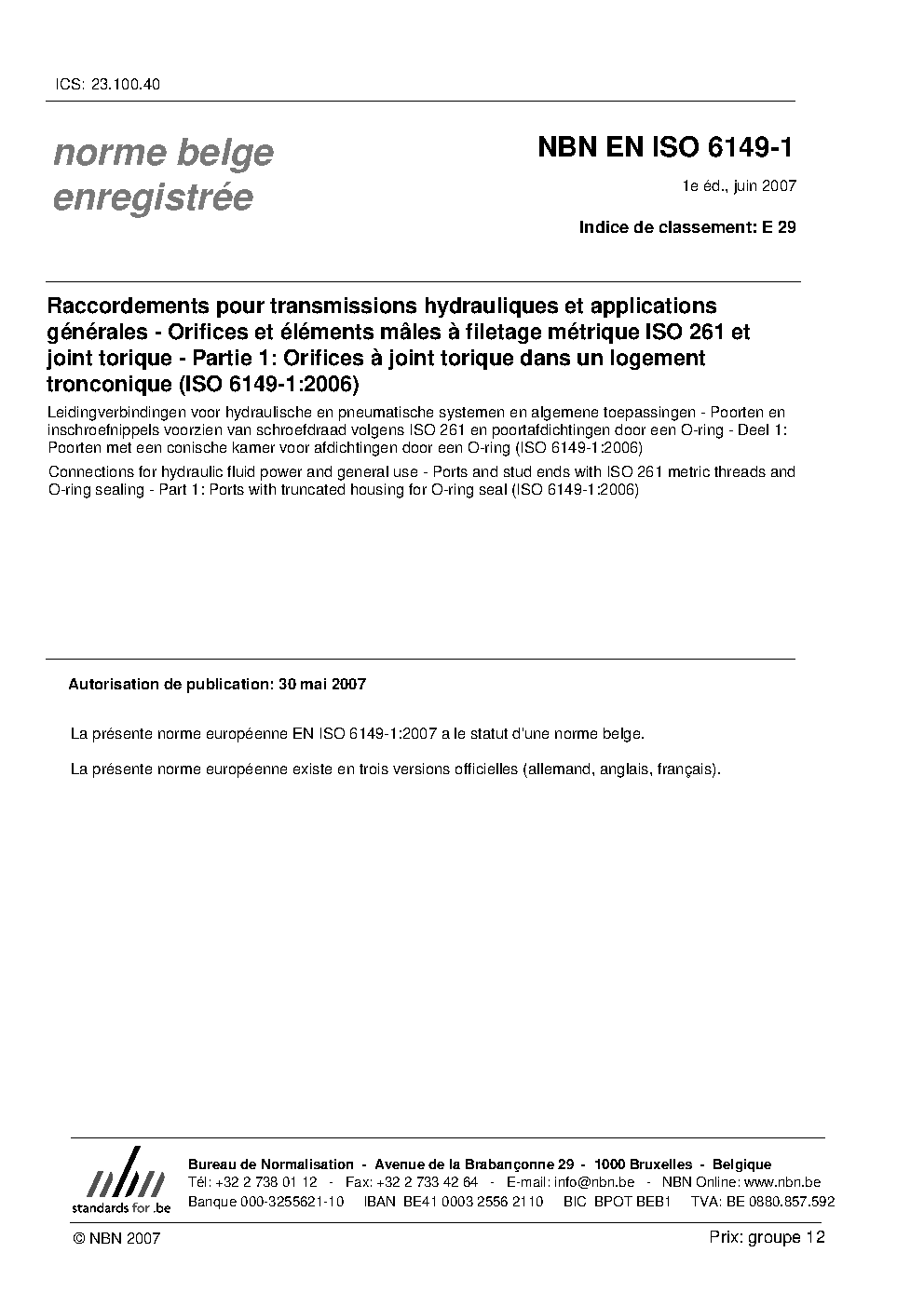 NBN EN ISO 6149-1:2007