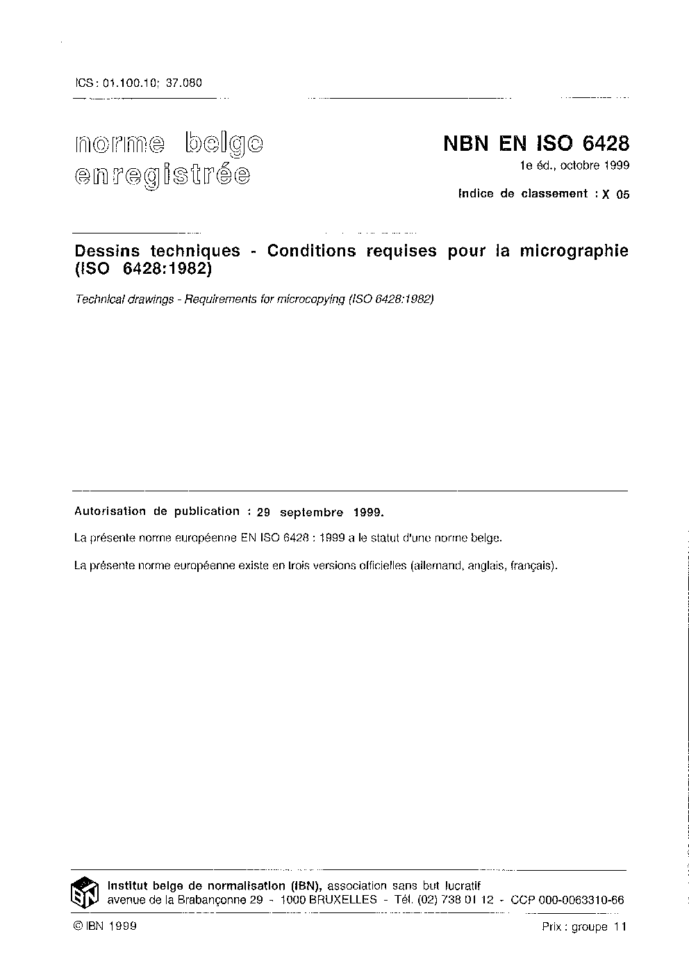 | Publisher | Bureau de Normalisation Belge (NBN) |
