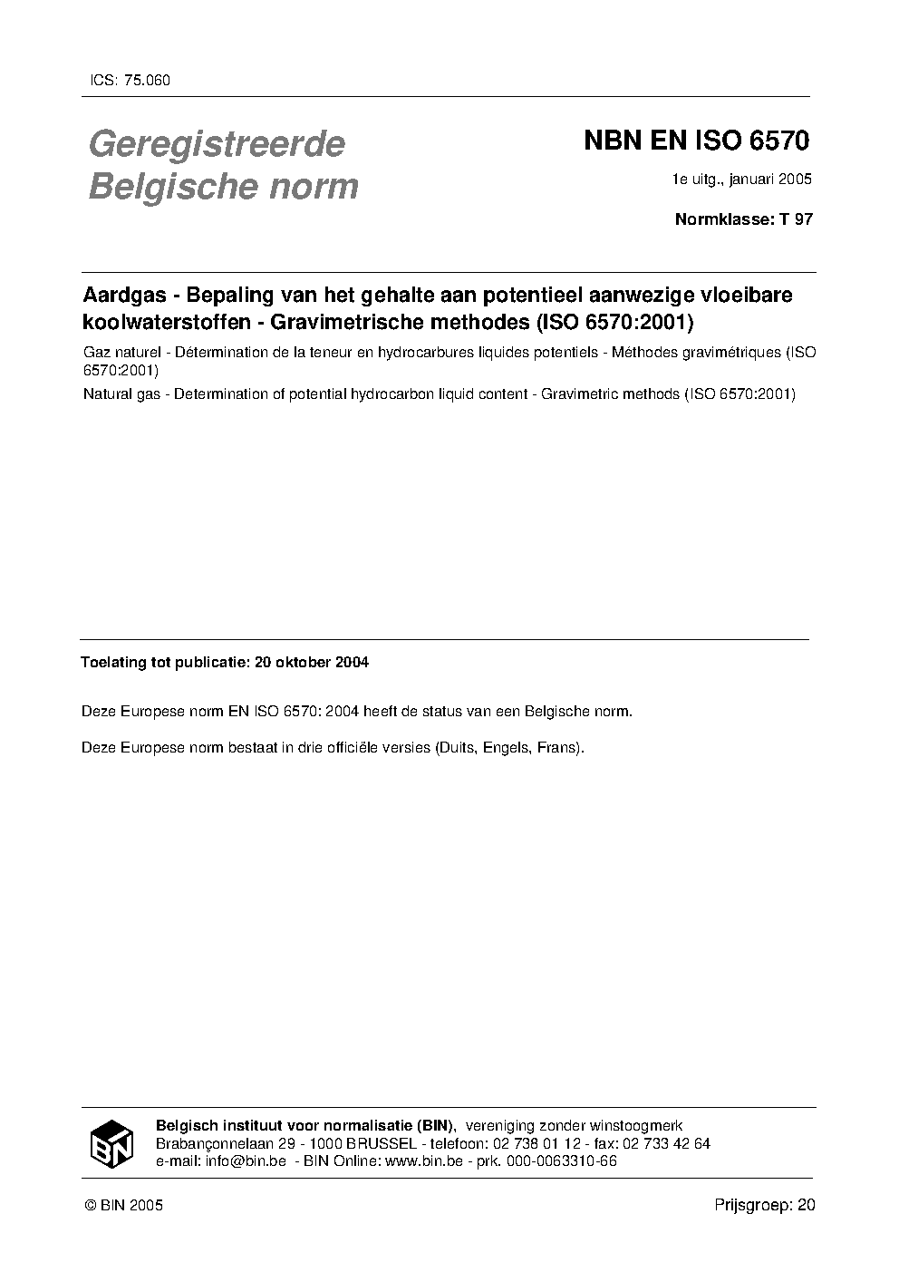 | Publisher | Bureau de Normalisation Belge (NBN) |