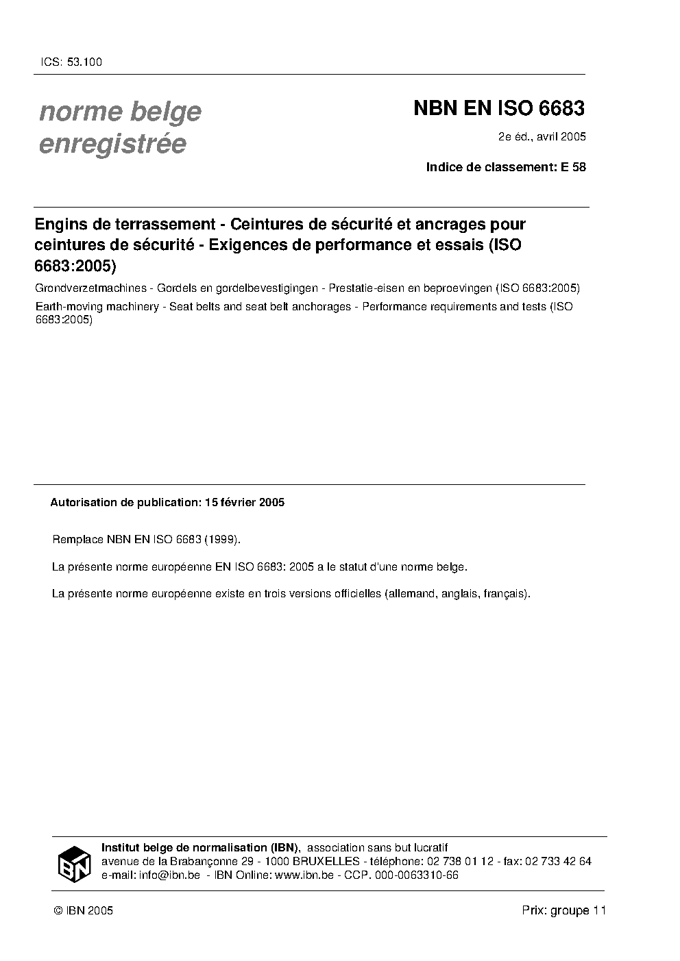 | Publisher | Bureau de Normalisation Belge (NBN) |