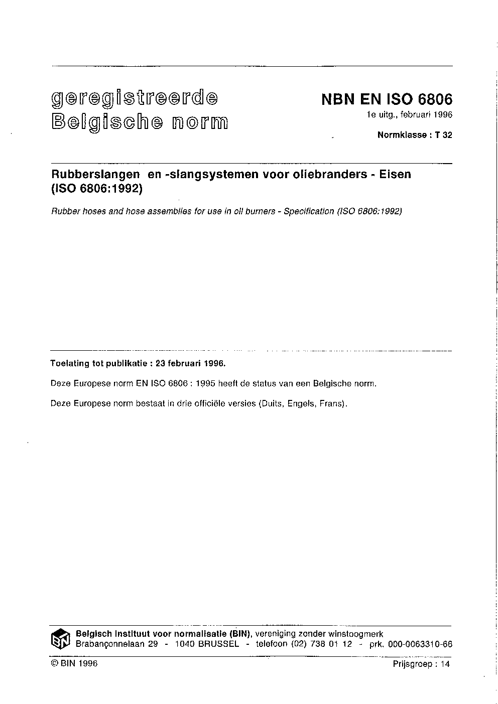 | Publisher | Bureau de Normalisation Belge (NBN) |