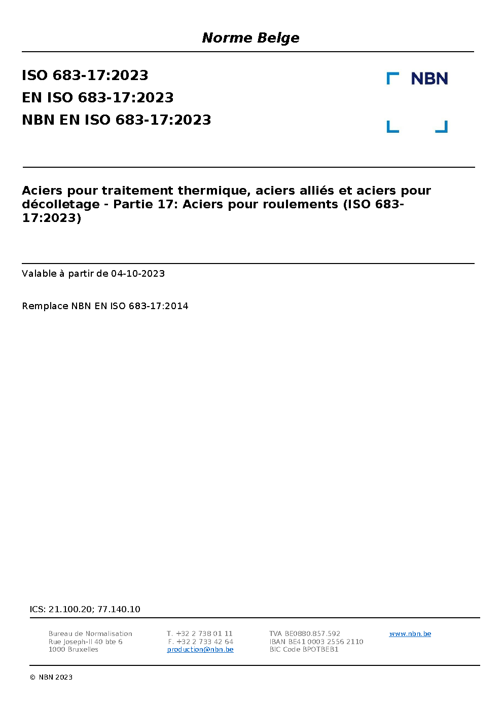 Heat-treated steels, alloy steels and free-cutting steels - Part 17: Ball and roller bearing steels (ISO 683-17:2023)