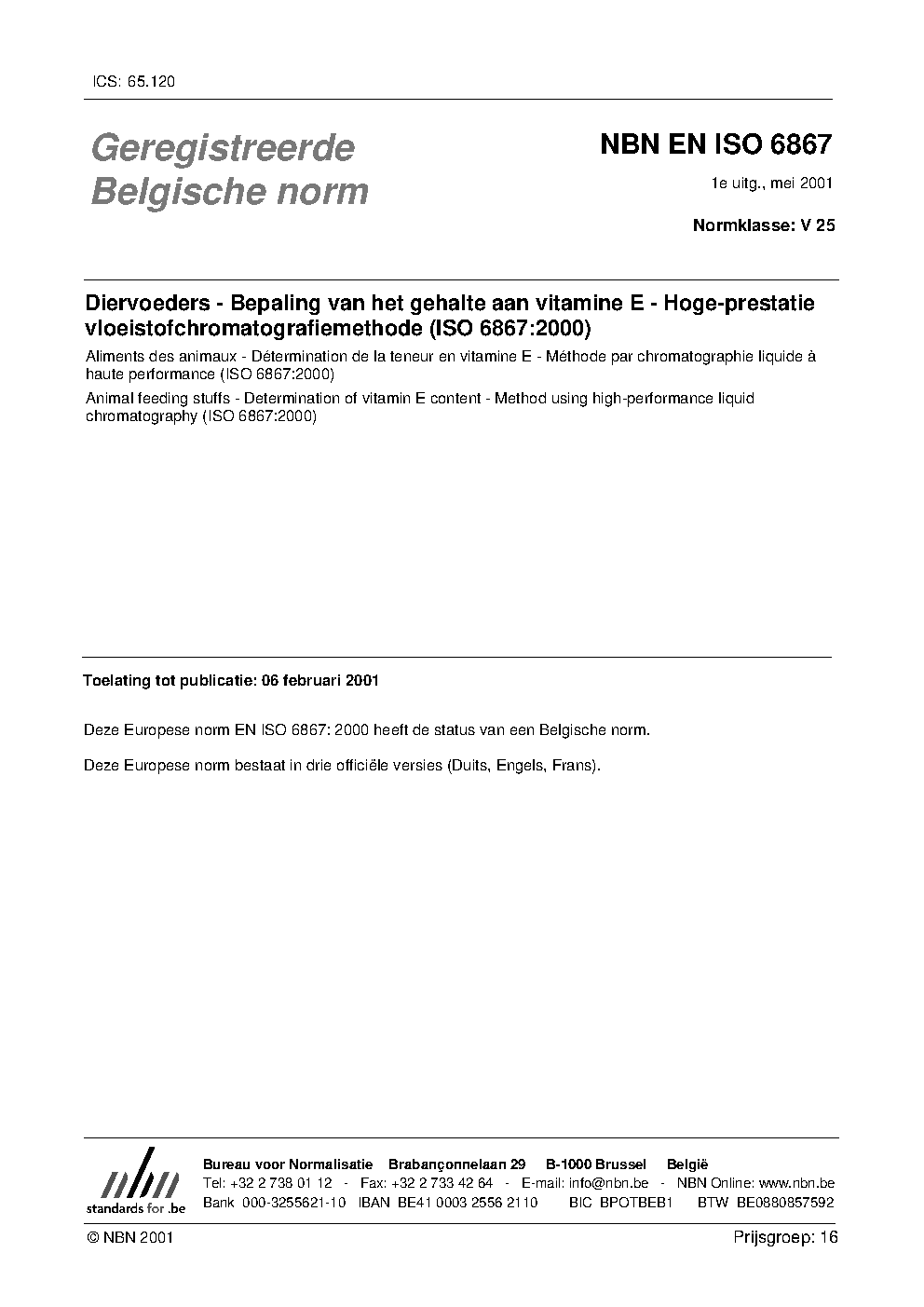 | Publisher | Bureau de Normalisation Belge (NBN) |