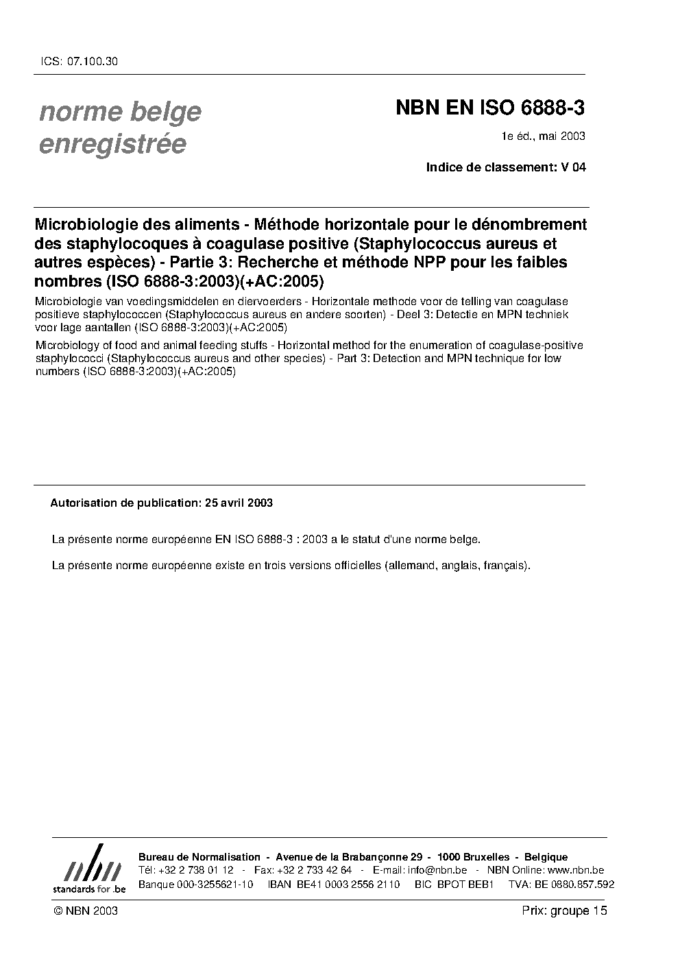 NBN EN ISO 6888-3:2003