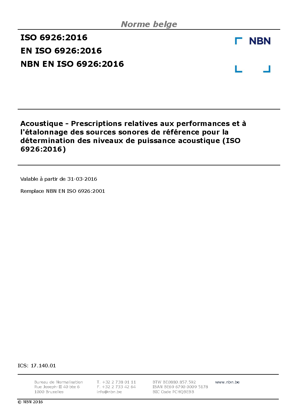 | Publisher | Bureau de Normalisation Belge (NBN) |