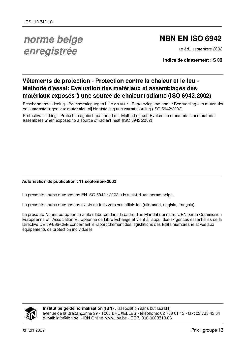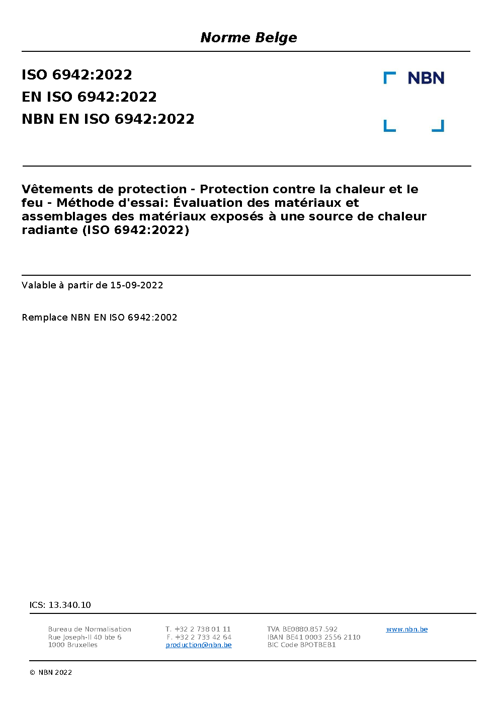 NBN EN ISO 6942:2022