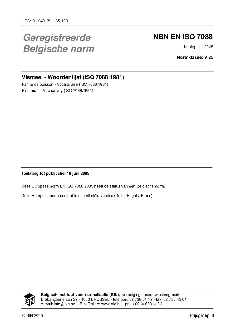 | Publisher | Bureau de Normalisation Belge (NBN) |