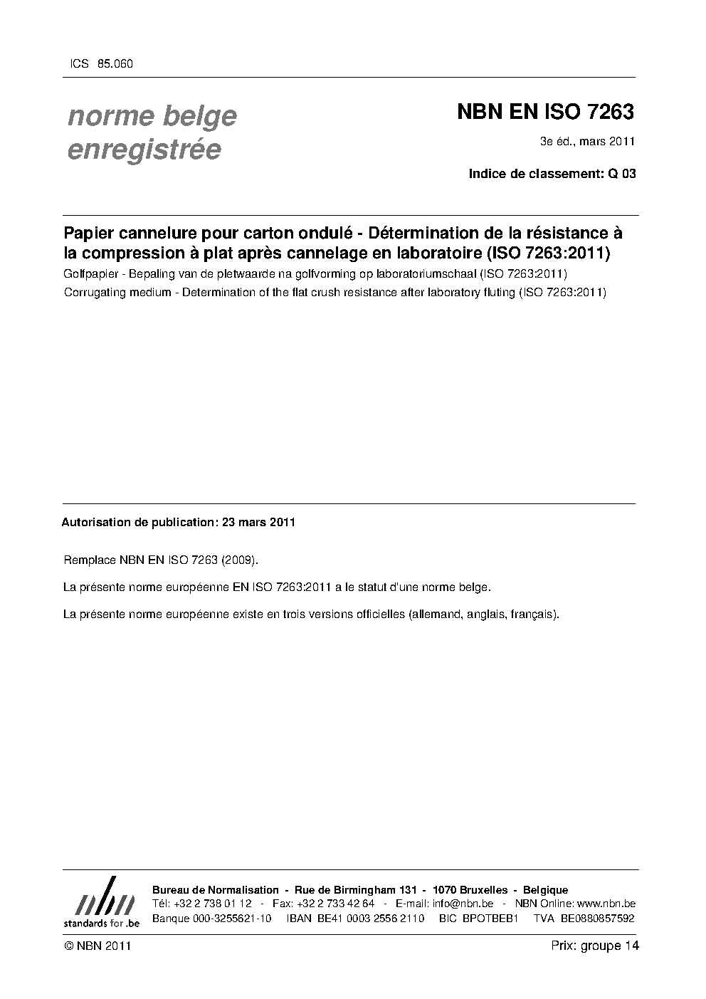 | Publisher | Bureau de Normalisation Belge (NBN) |