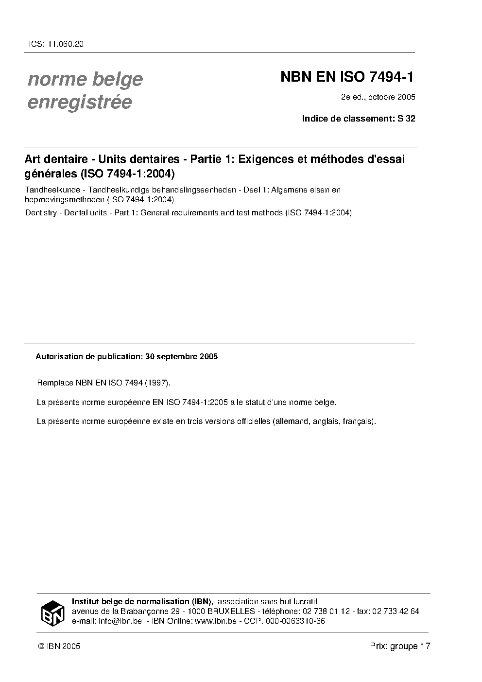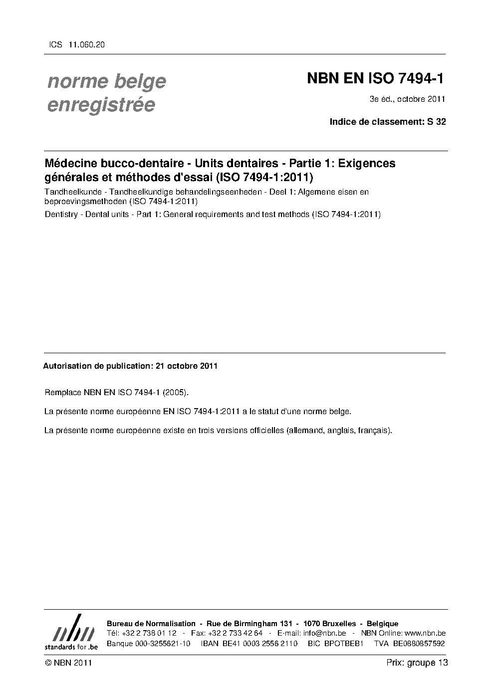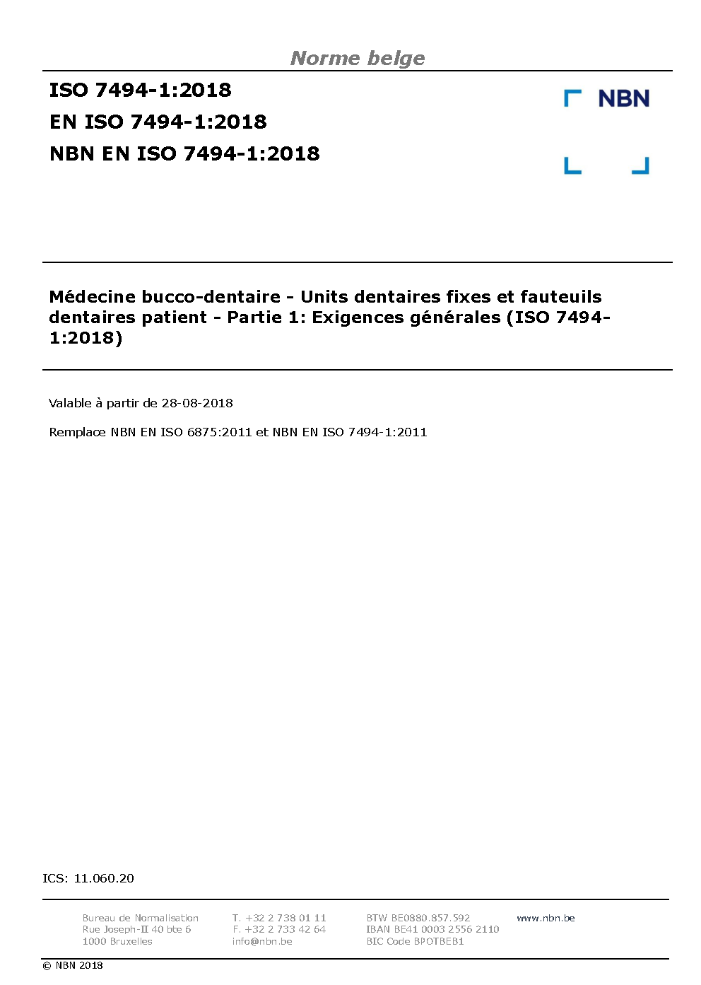 | Publisher | Bureau de Normalisation Belge (NBN) |